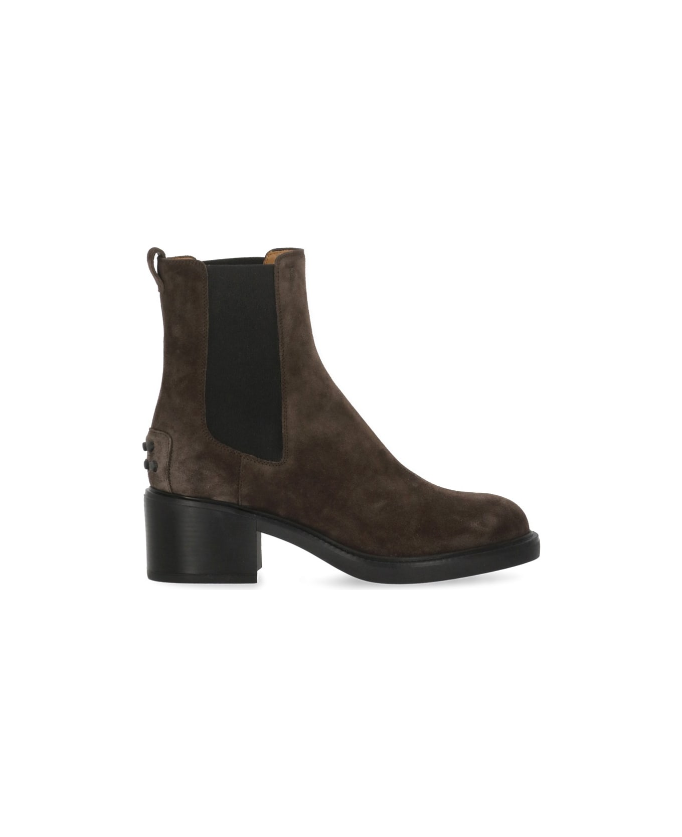 - Tod's brown woman's suede leather Chelsea boots - Round toe - Two side tone on tone elastic bands - Front embossed logo - Heel (6 cm)