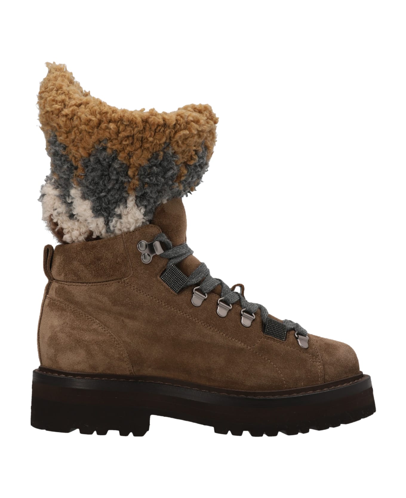 Suede lace-up boots with multicolor knit sock detail at the ankle, back zip closure, rubber sole and 'Monile' details. Composition: