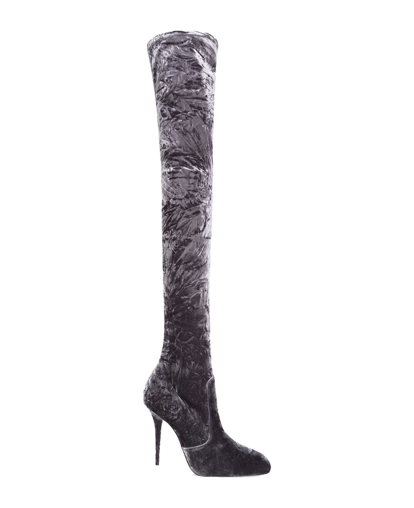 - Composition: 100% texile (velvet) - Fabric lining - Leather insole and sole - Slips on - Heel 10 cm / 3,93 in
