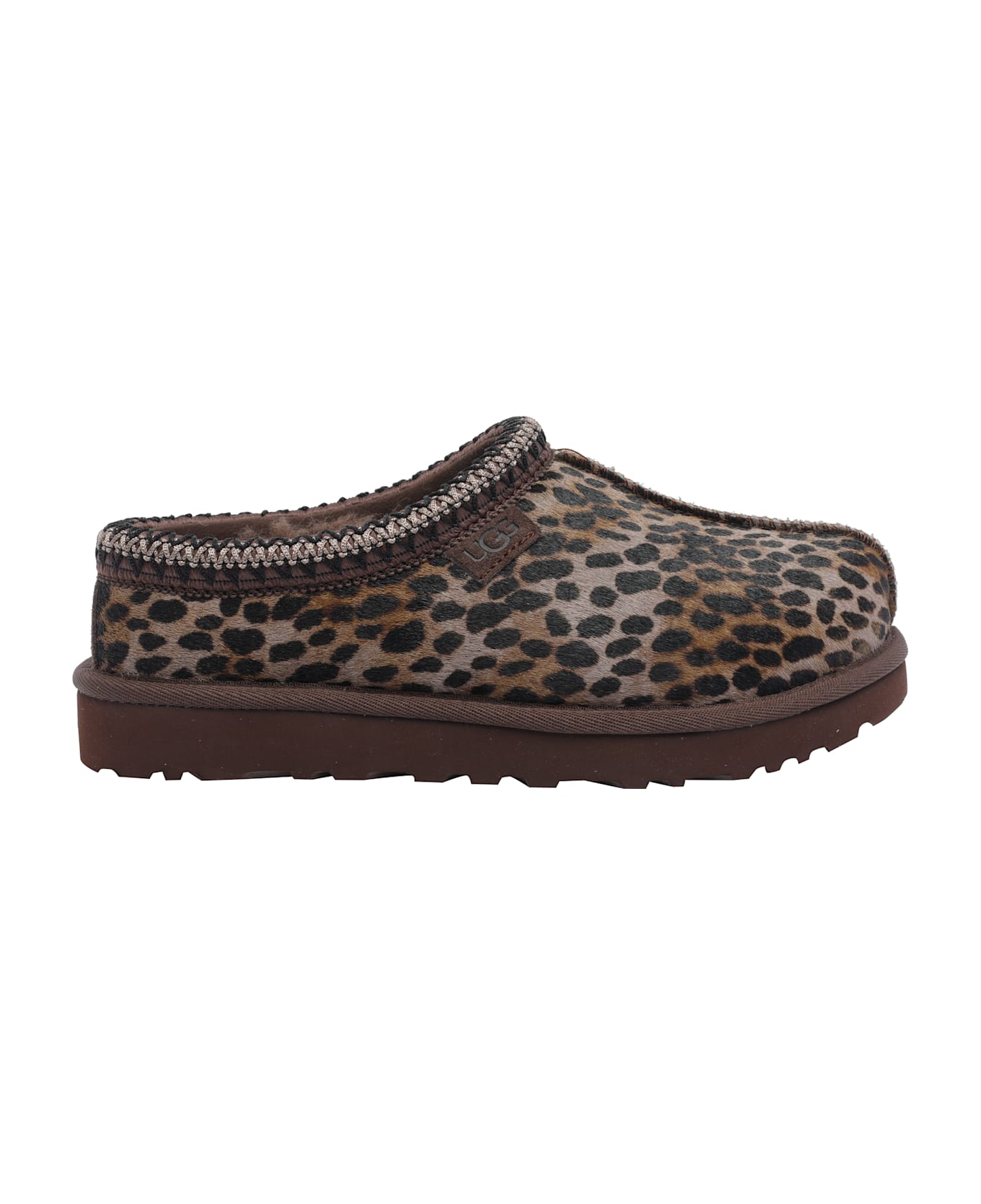 Ugg brown Tasman Caspian booties, round toe, animalier pattern, lateral logo