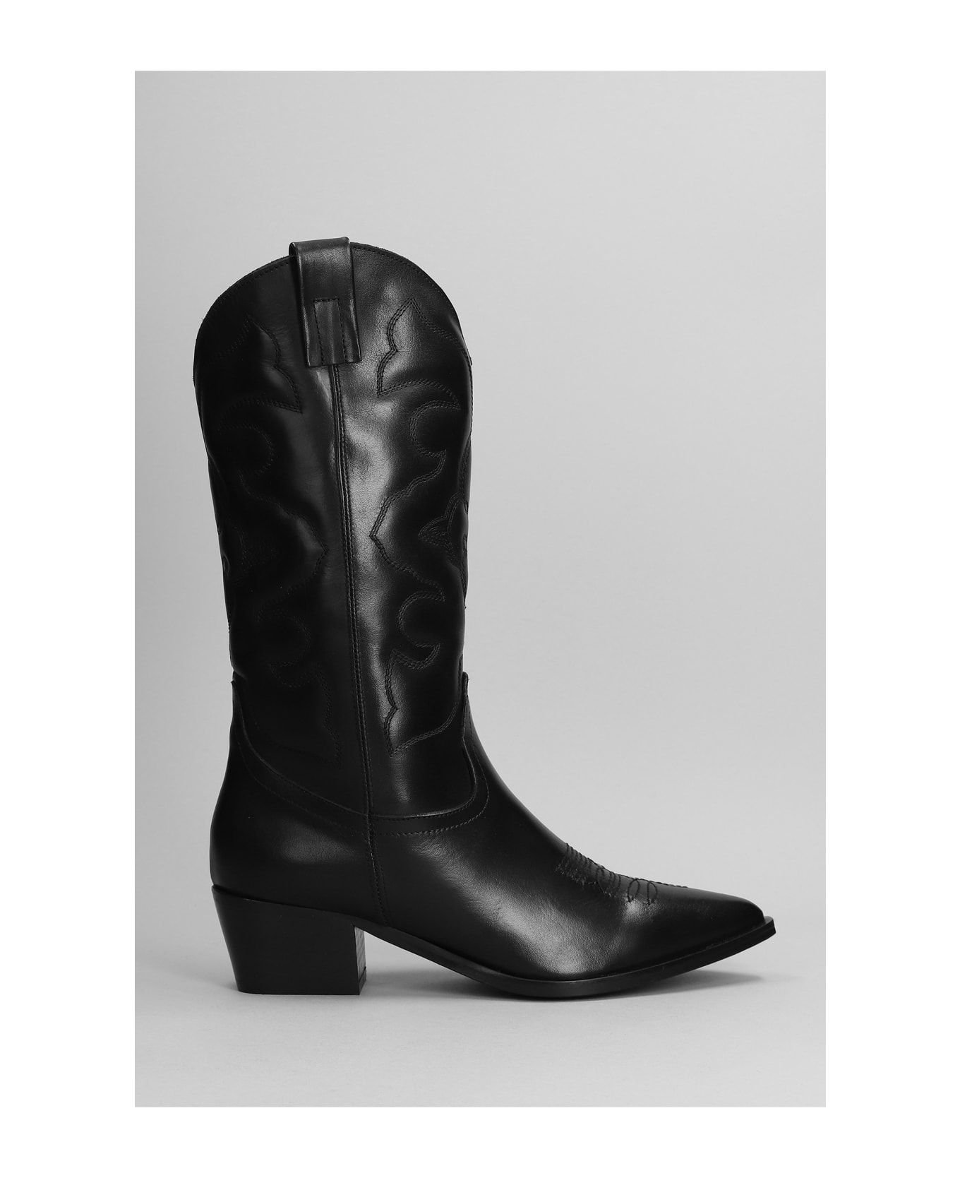 texan Ankle boots in black leather, pointed toe, side pulltab, embroidery, 100% leather, leather sole, 50 mm heel, Made in Italy