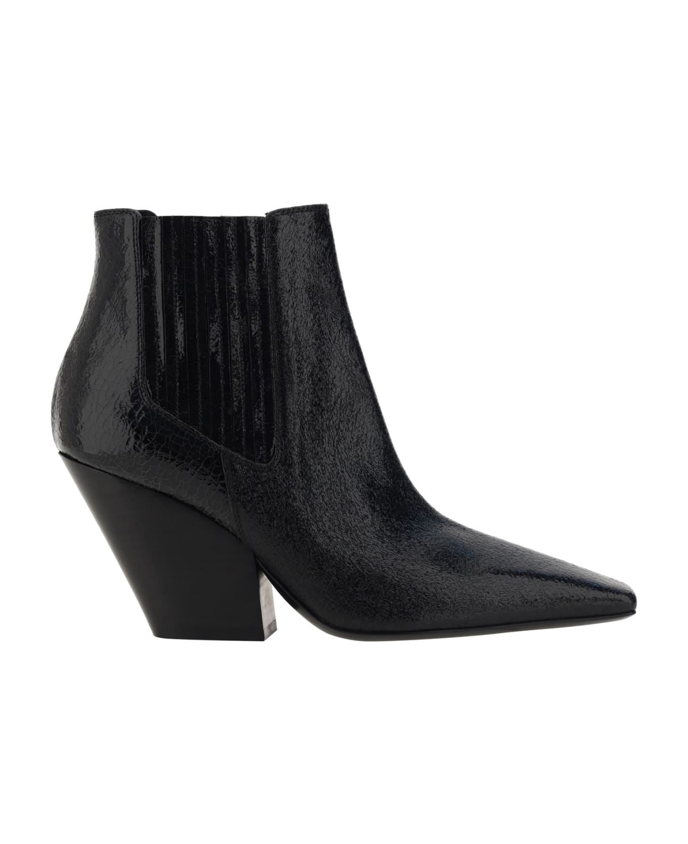 Calfskin ankle boots by casadei, texan model, square toe on front, elastic inserts on side panels, geometric leather chunky heel, grained leather design. Composition: 100% % Calf Leather Bos Taurus, 100% % Calf Leather Bos Taurus