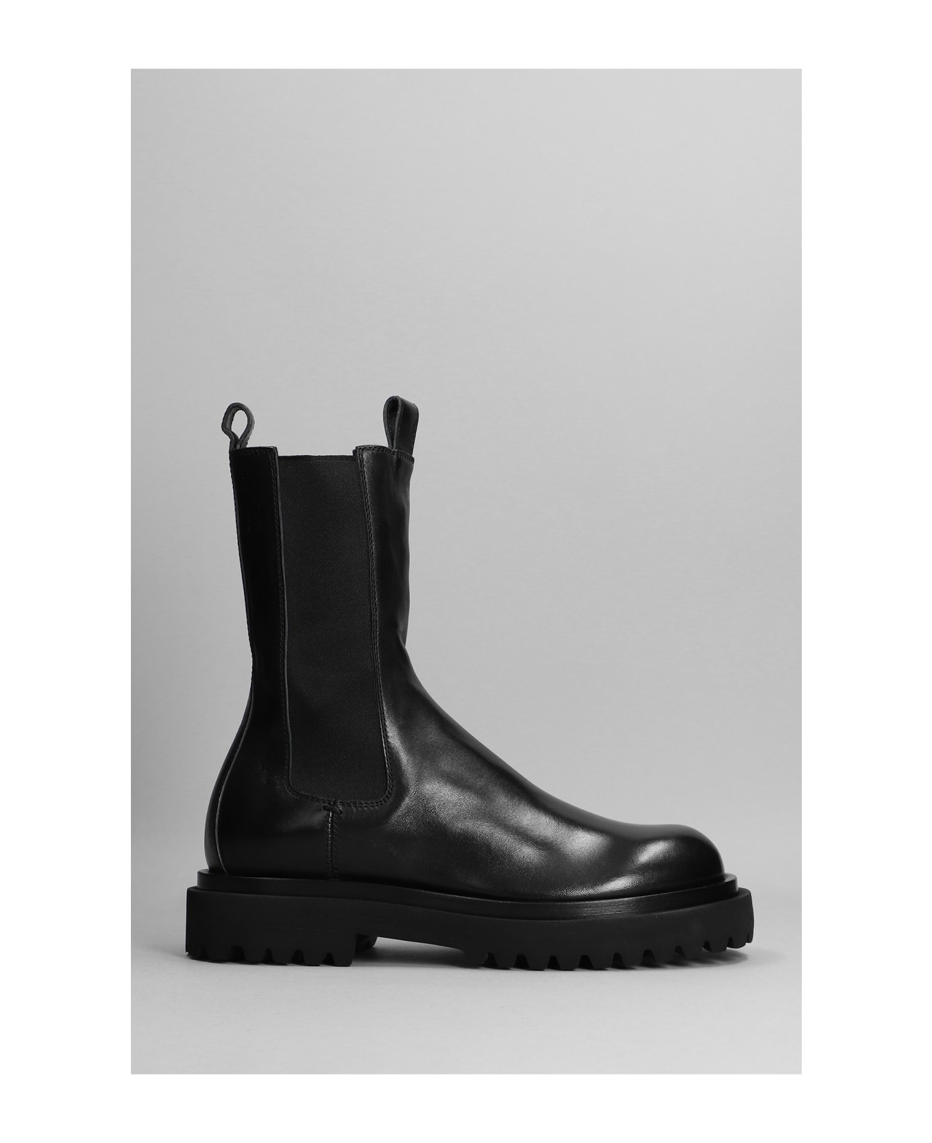 Ultimatt 002 Combat boots in black leather, round toe, side elastic band, leather sole, 40 mm heel, 100% leather, Made in Italy
