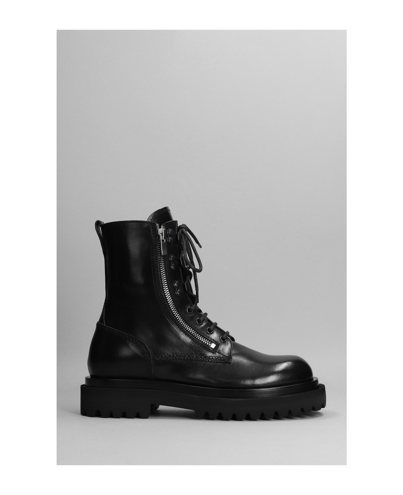 Ultimatt 003 Combat boots in black leather, round toe, laces, side zip, silver hardware, heel 4,5, 100% leather, Made in Italy