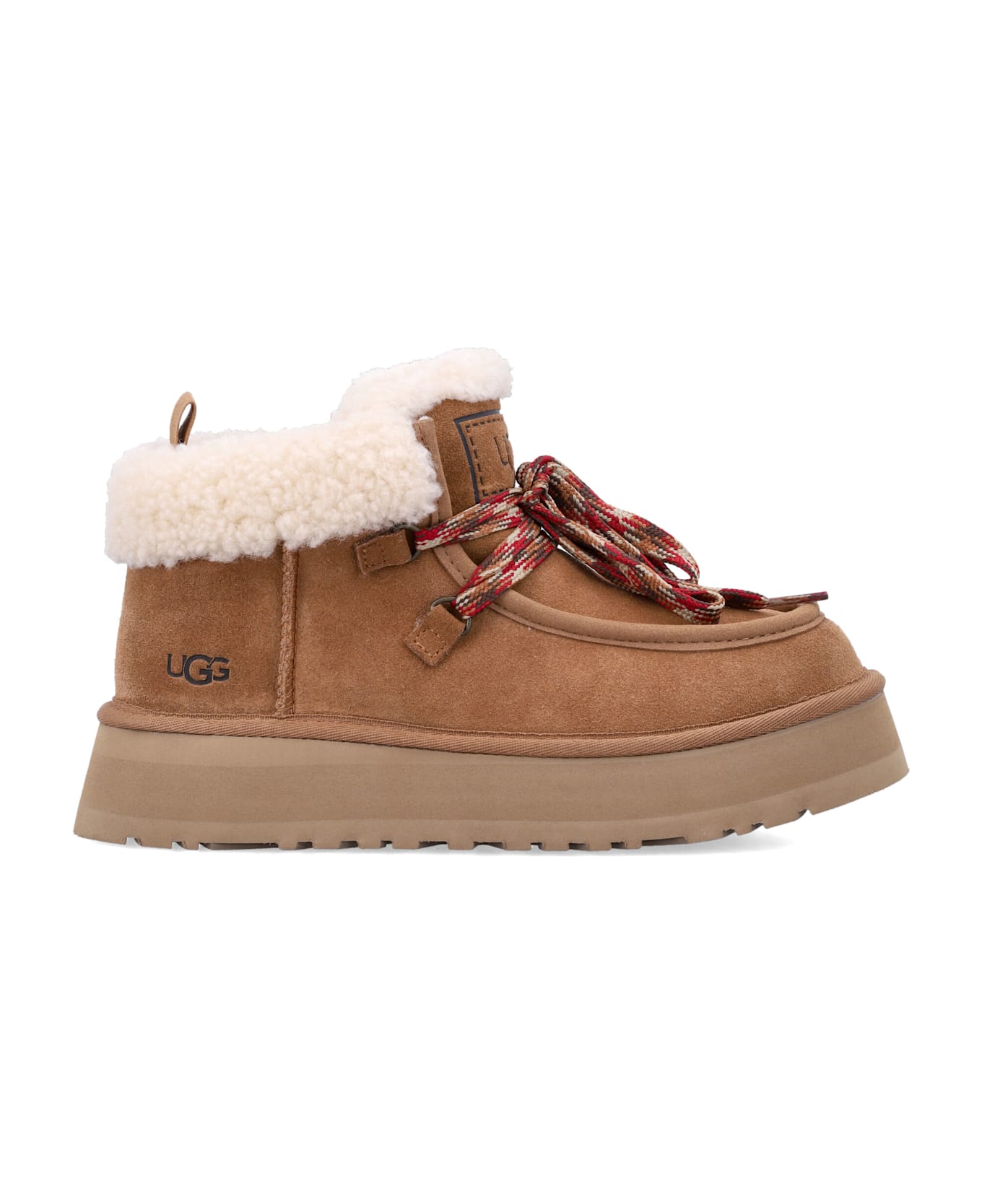 Women's Funkarra Cabin Cuff Boots By Ugg. Featuring: Suede Upper Sheepskin Collar Rear Pull Tab Lace-up Fastening Metal Lace D-rings Sheepskin Lining Eva Midsole Sugarcane Eva Outsole Textile Binding Made Embossed Ugg® Tongue Logo Shaft Height: 10,8 Cm Platform: 4 Cm