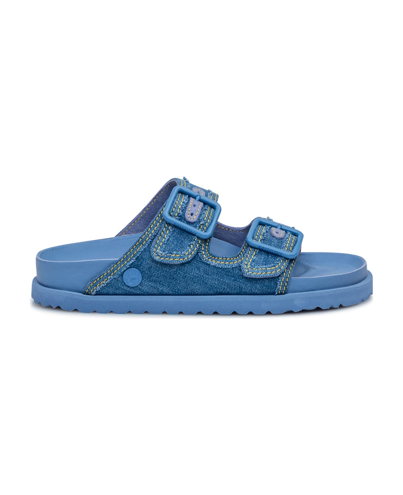 Leather slippers. Soft original BIRKENSTOCK anatomical footbed. Leather upper and insole. Two denim straps with individually adjustable metal pin buckles. Composition: Outside: 100% Fabriclining: 100% Leather, 100% Rubber Sole: 100% Rubber