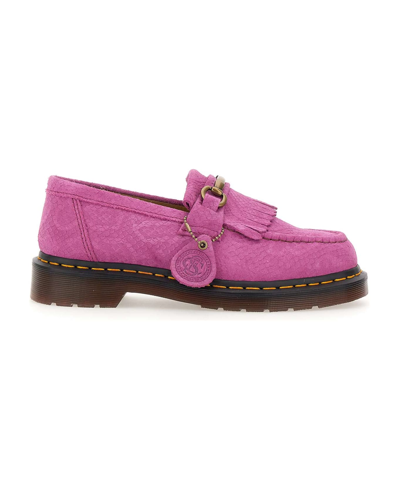 Dr. Martens "Adrian Snaffle" women's suede loafers, fuchsia, matching tassels and antiqued gold metal bit, visible stitching, iconic yellow stitching, rubber sole with 3cm heel. Composition: 100% Pelle; Suola :, 100% Pvc