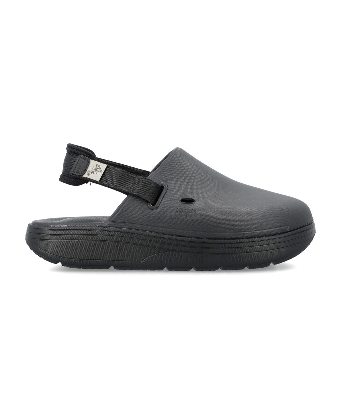 Rubber Cappo Mule By Suicoke. Featuring: Round Toe Embossed Tonal Logo At Side Hook And Loop Strap At Back With Padded Detail