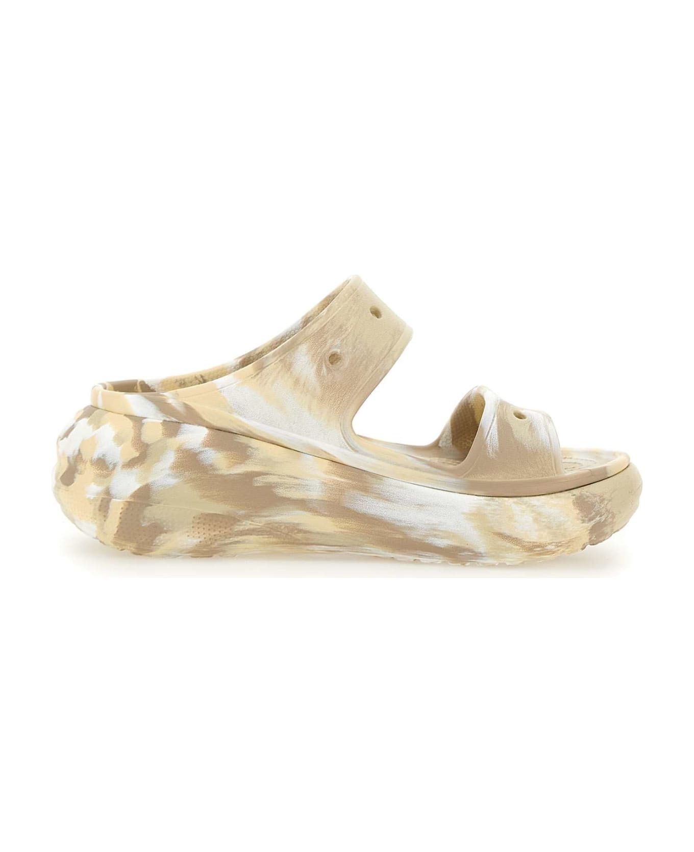 Crocs sandals "Classic Crush Marbled" in beige Croslite foam with marbled effect, two-band upper, Iconic Crocs Comfort technology. Roomy Fit for a more comfortable fit, 6 cm high textured rubber sole.