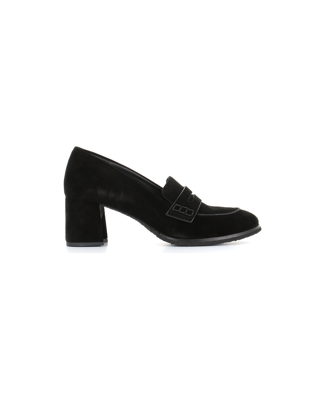 Black suede Décolletè from Del Carlo, featuring a round toe. Flexible nature para sole. Lined interior. Heel: 6 cm