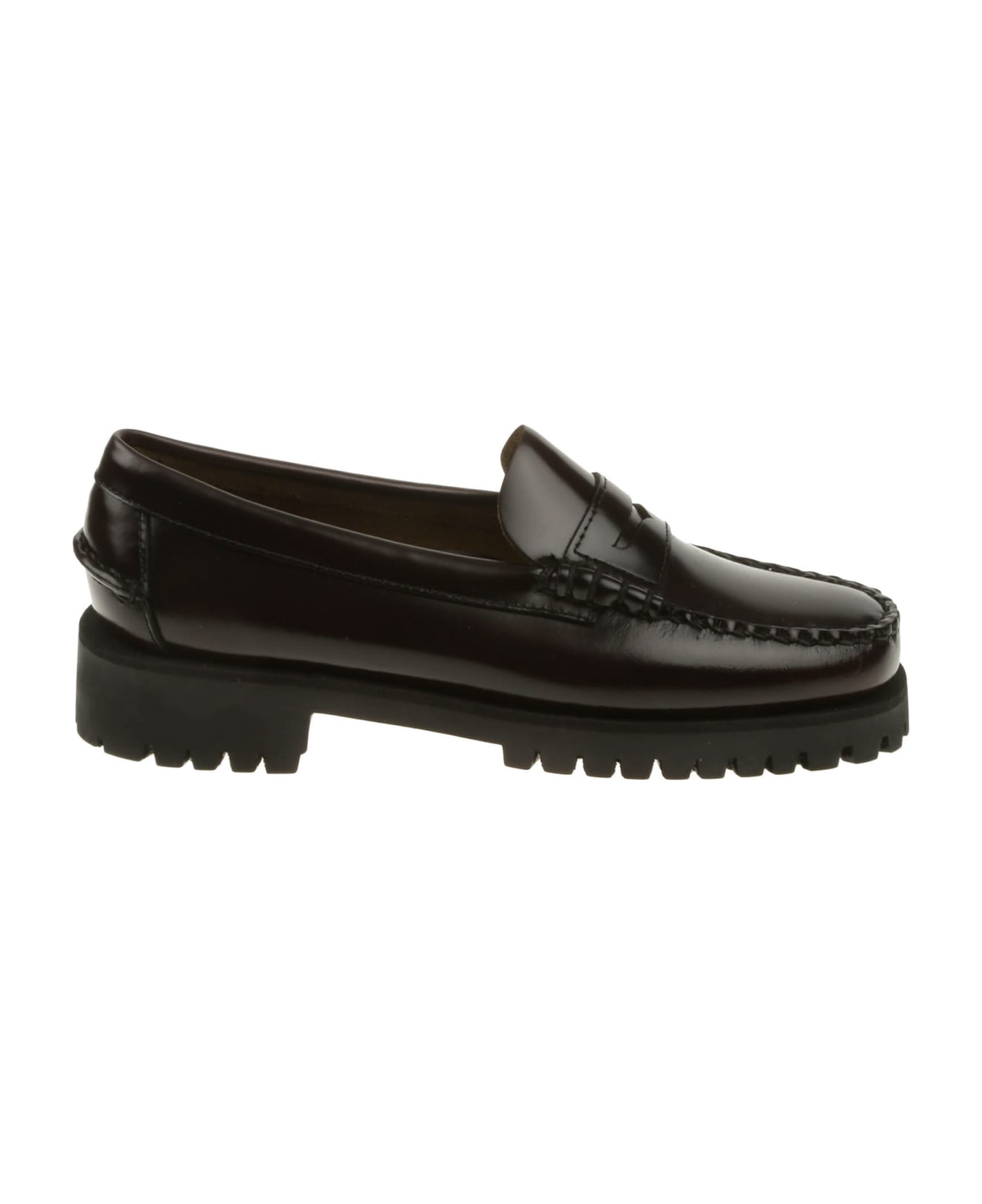 Sebago Brown leather loafer, stitching on the toe, leather insole, track rubber sole.