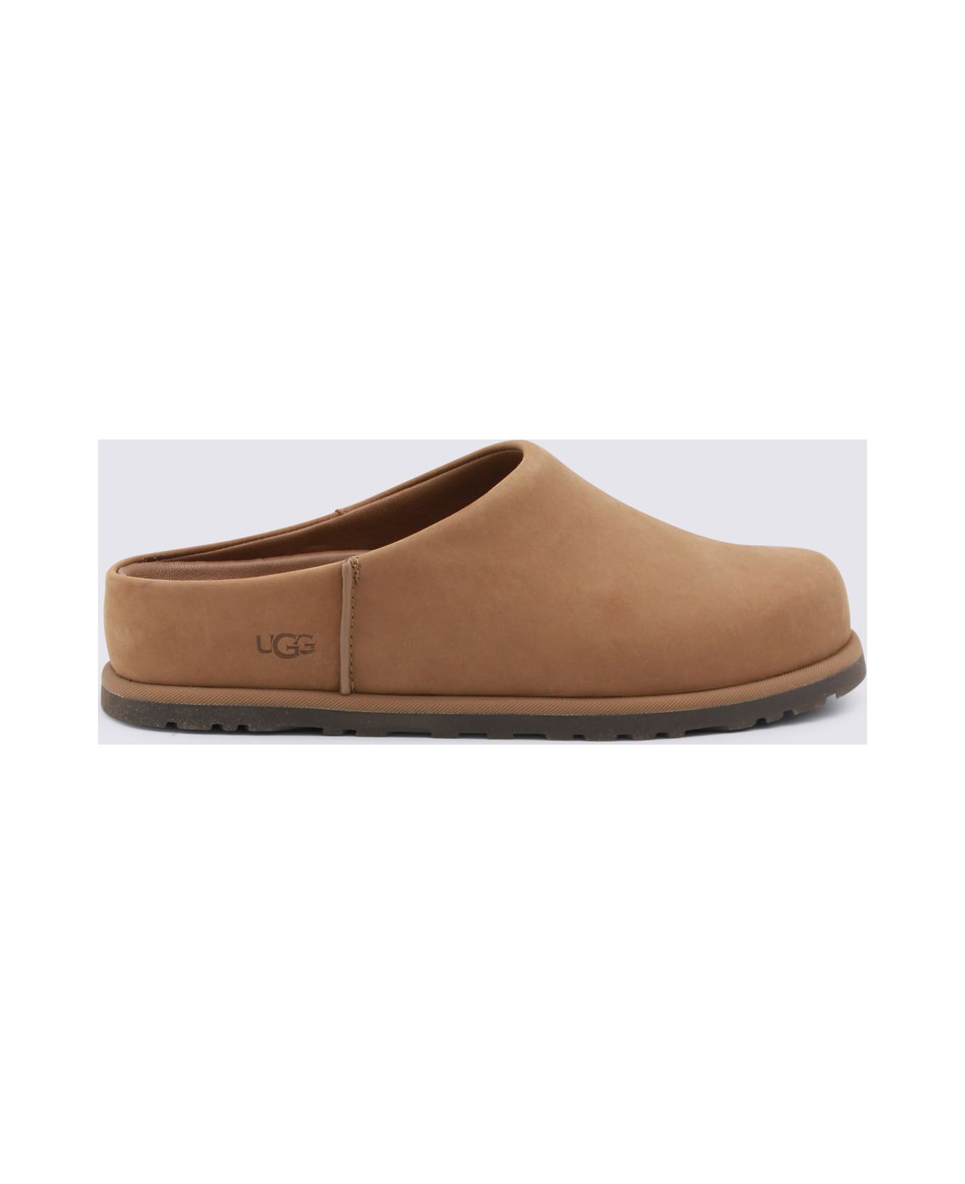 Dark Chestnut leather Otzo flats from UGG featuring flat line, round toe, embossed logo and branded sole.