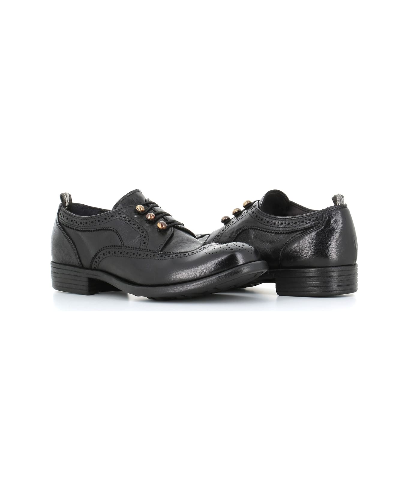 Black leather Derby from Officine Creative, featuring by age-old effect made by to washing treatment, by perforated details with a 'brogue' workmanship and by a closure with laces-buttons. Rubber sole. Lined interior. Heel: 3,5 cm