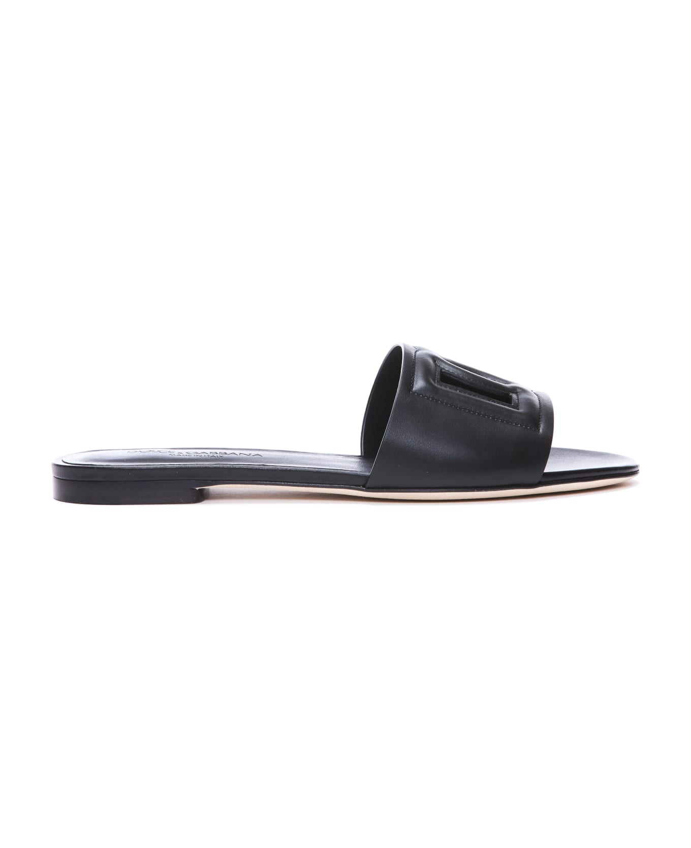 - woman slide sandals, dg millennials logo model, leather - Composition: 100% Calf Leather, Leather Sole