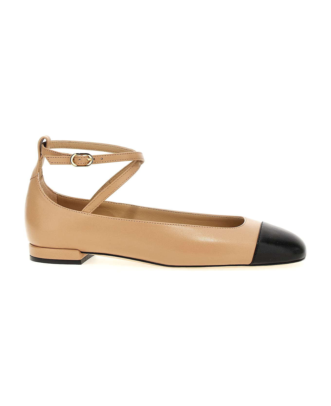 'Eden Strap' leather ballet flats with contrast toe, braided and adjustable ankle strap, leather sole.