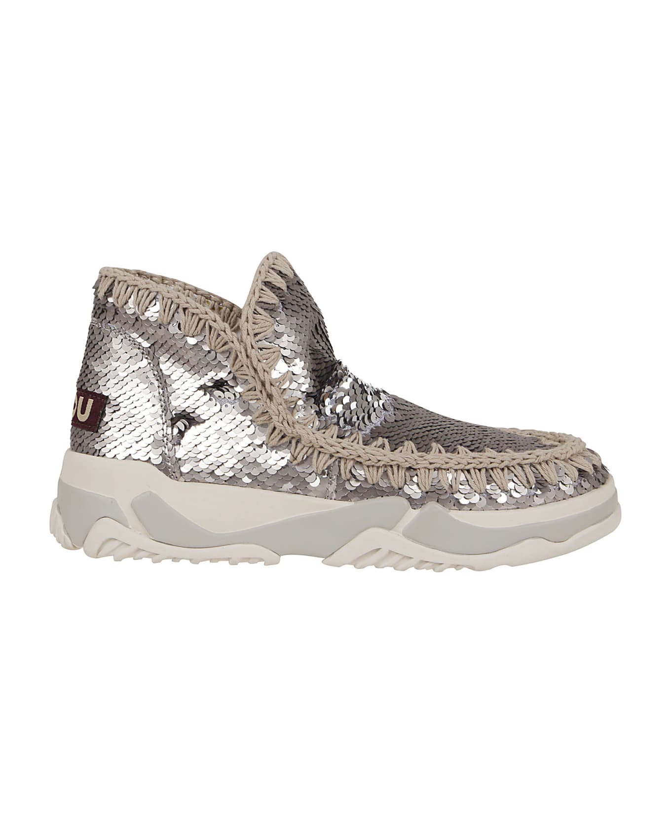 Eskimo trainer all sequins BY MOU. Distinctive eskimo stitching embellished with sparkling sequins; Completed with cotton lining and padded suede insole; very light rubber and EVA outsole Height 15cm.