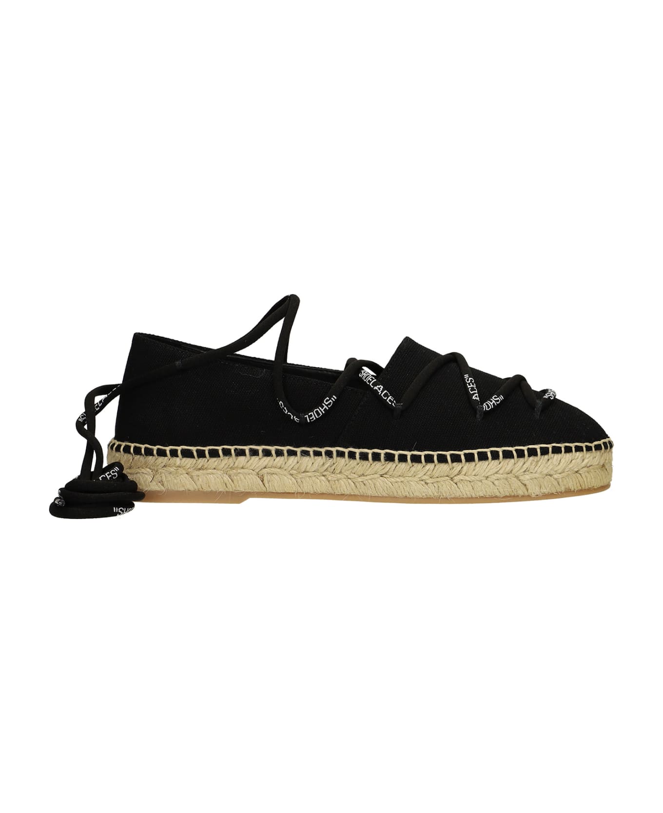 Espadrilles in black cotton, lace up, slip on, fringed tassel, juta platform, 100% canvas, Made in Spain