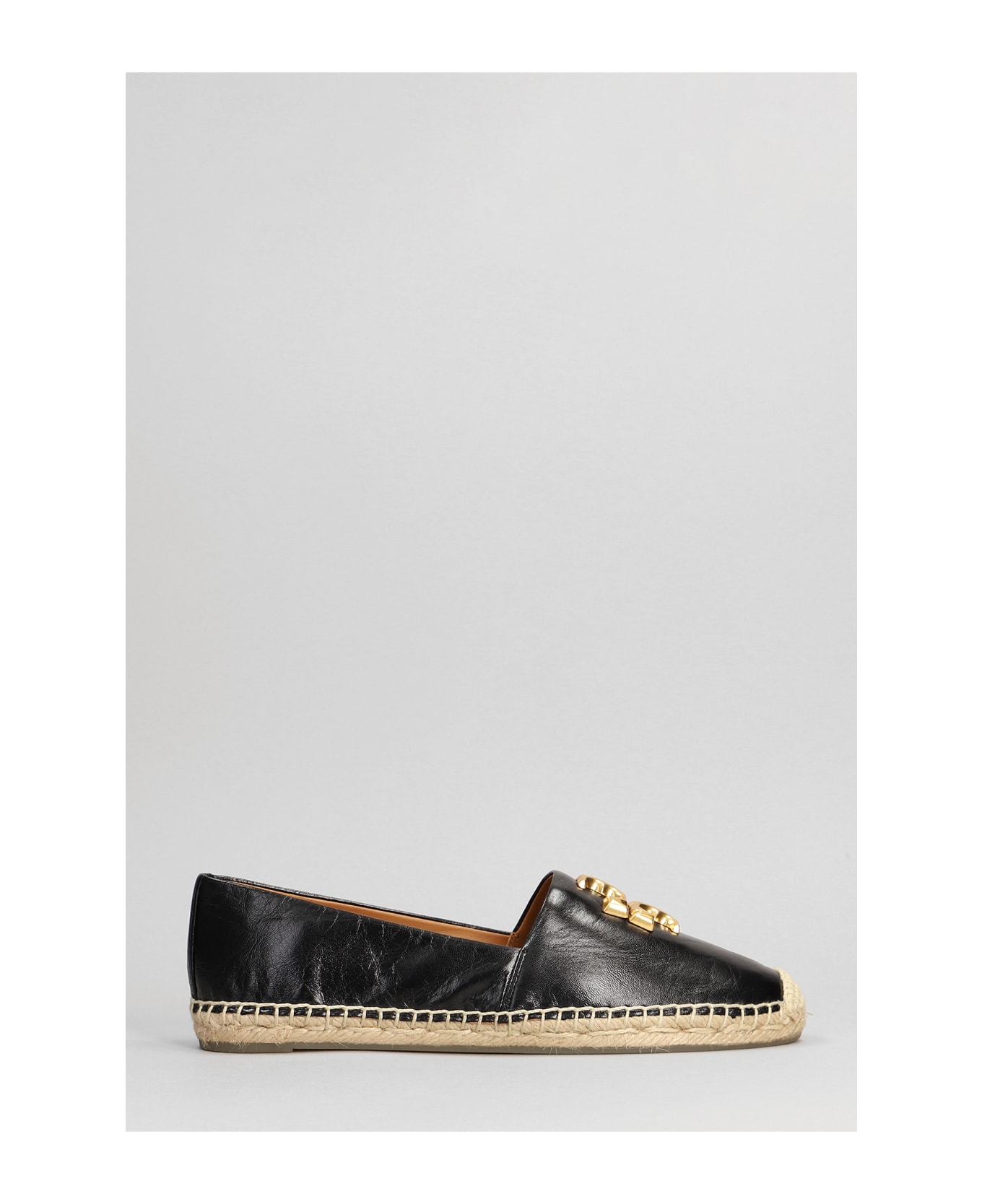 Espadrilles in black leather, slip on, front logo, juta platform, 100% leather, Made in Vietnam