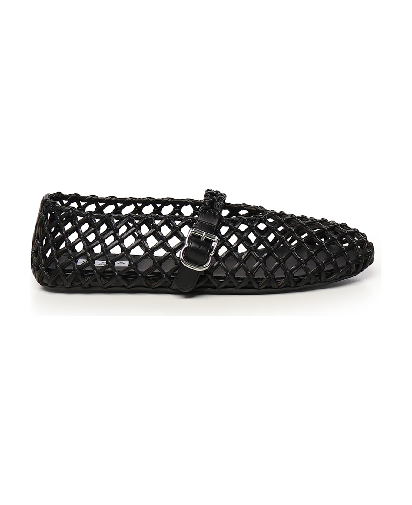 -Iconic Alaïa ballerinas inspired by classic Japanese shoes -Strap with buckle on top -Rounded toe, rubber sole -Hand woven lamb skin -Colour: Black -Made in Italy