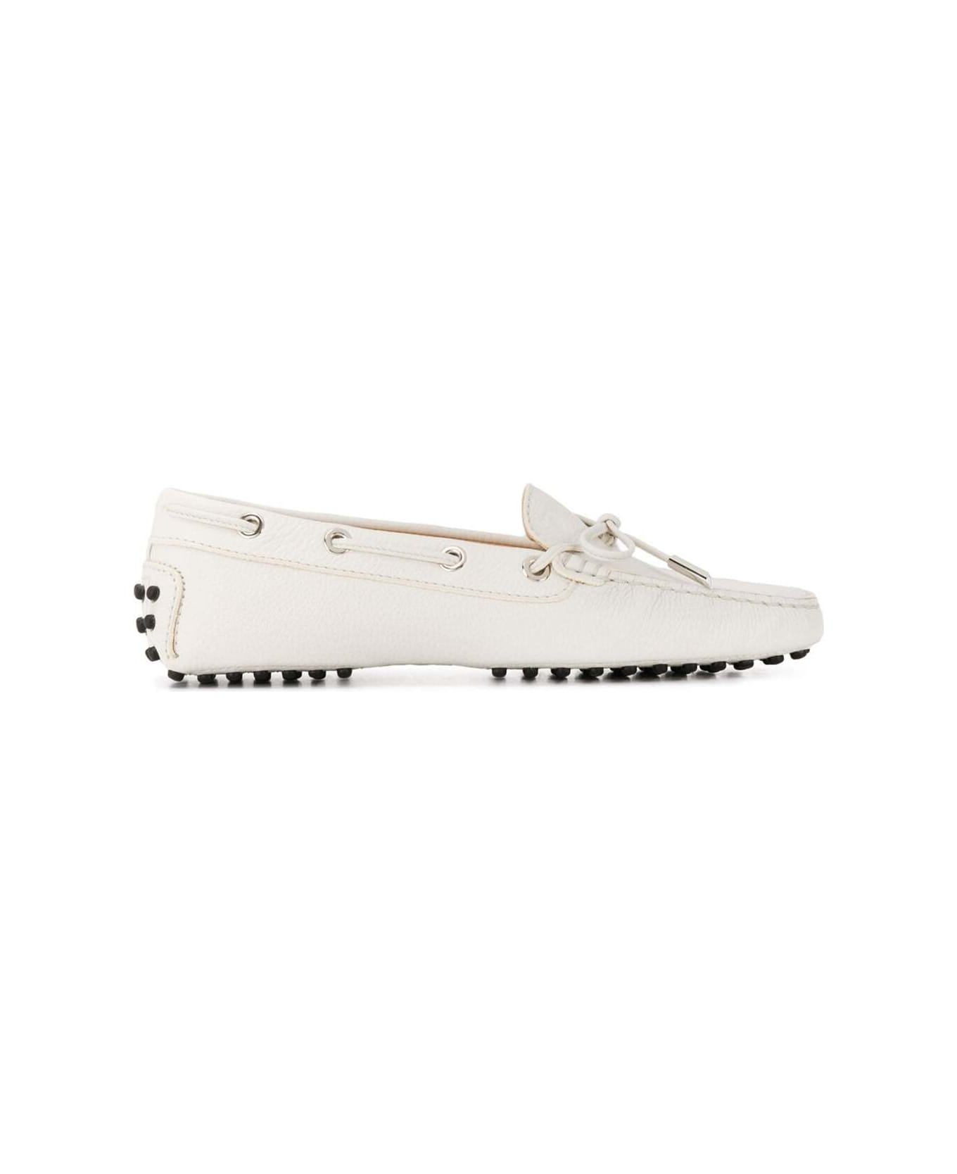 LoafersAlmond toeSlip-on design Bow fastening at the front Signature gommino rubber sole Branded insole Silver-tone hardwareWhite Calf leather Composition: 100% Calf