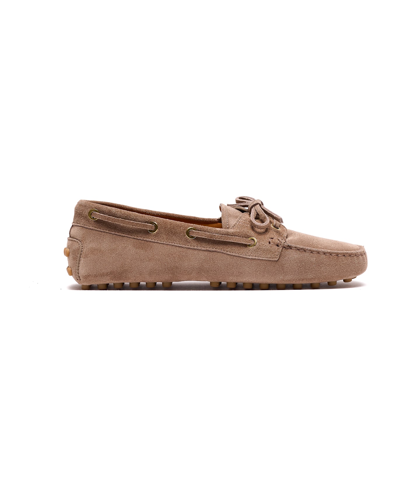 Tod's beige Gommino suede boat loafers, round toe, suede model