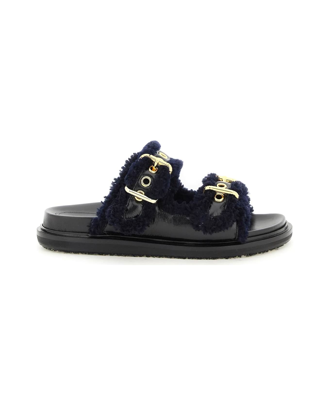 Marni Fussbett slides characterized by the upper with double adjustable strap in leather with shearling lining. Buckles and eyelets in gold-finished metal. Leather moulded insole, rubber and jute sole. Composition: 100% LH, 100% LW