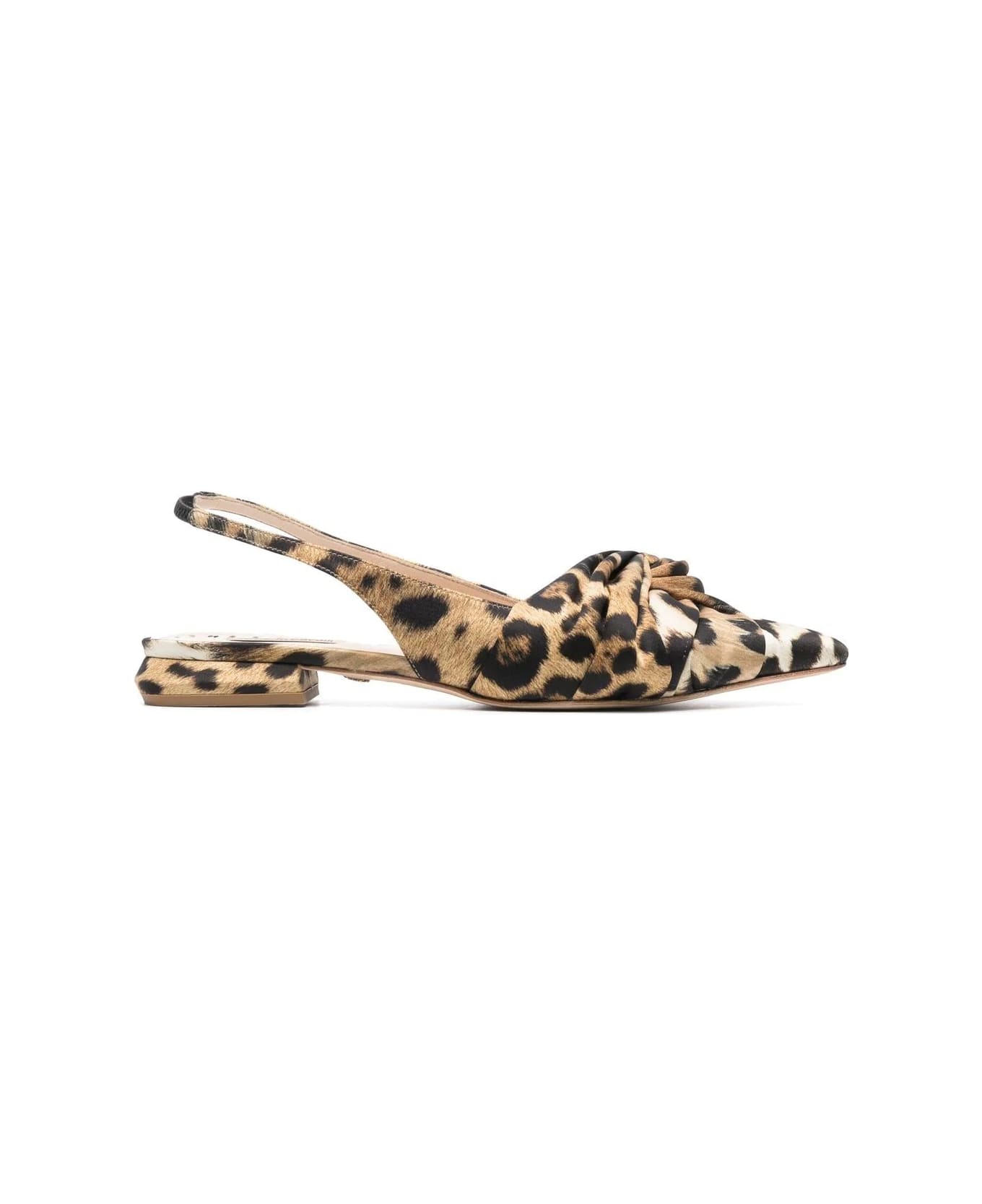 Roberto Cavalli slingback ballerina in leather with an all-over leopard print, pointed toe design and top knot.