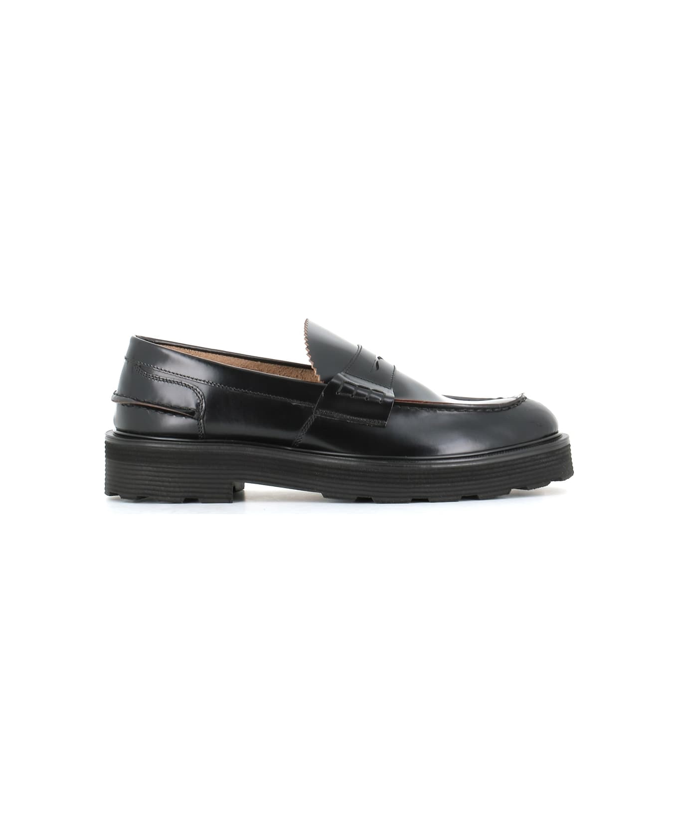Black brushed leather classic Loafer from Sturlini. Lined interior. Leather fund with high rubber sole. Heel: 4 cm