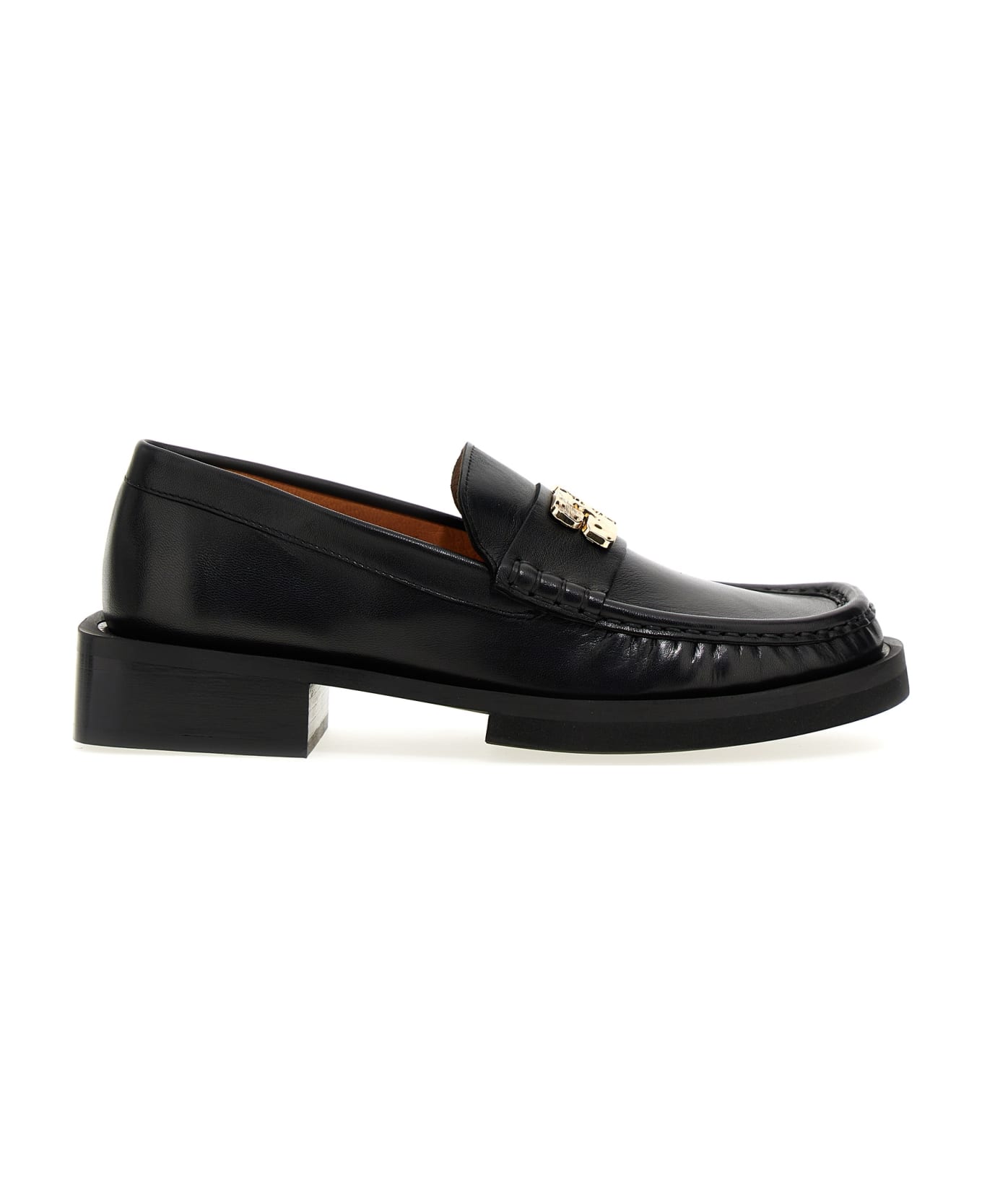 Leather loafers with gold metal logo application on the front. This is a handmade product Each variation in the leather creates a unique and special appearance to the shoe. Composition: 100% calfskin leather (Bos Taurus)