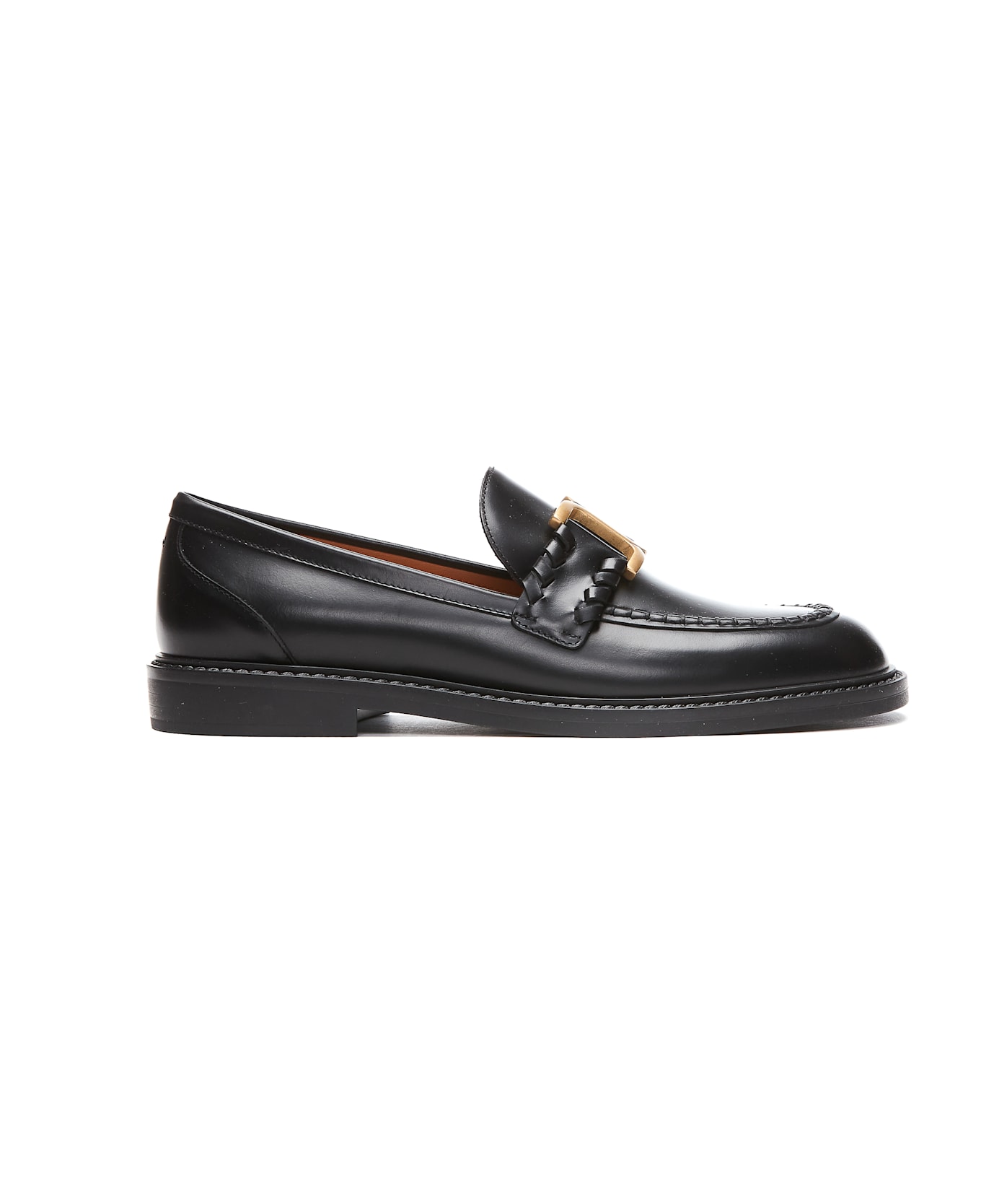 Chloe' black Marcie loafers, round toe, leather upper, frontal golden detail Composition: 100% Calf Leather/rubber Sole
