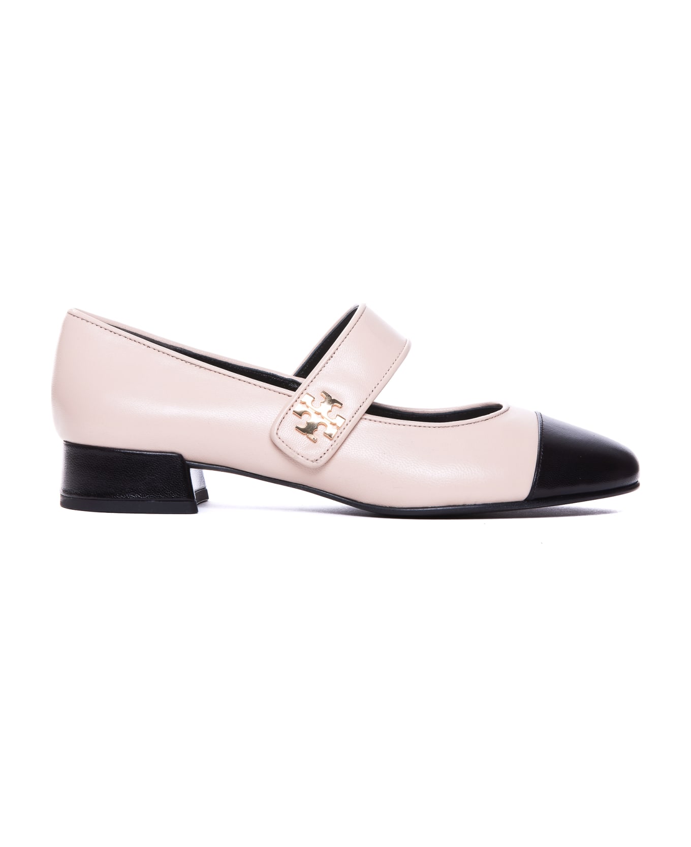 Tory Burch pink Mary Jane, pointed toe, leather upper, lateral stretch closure with mini golden logo