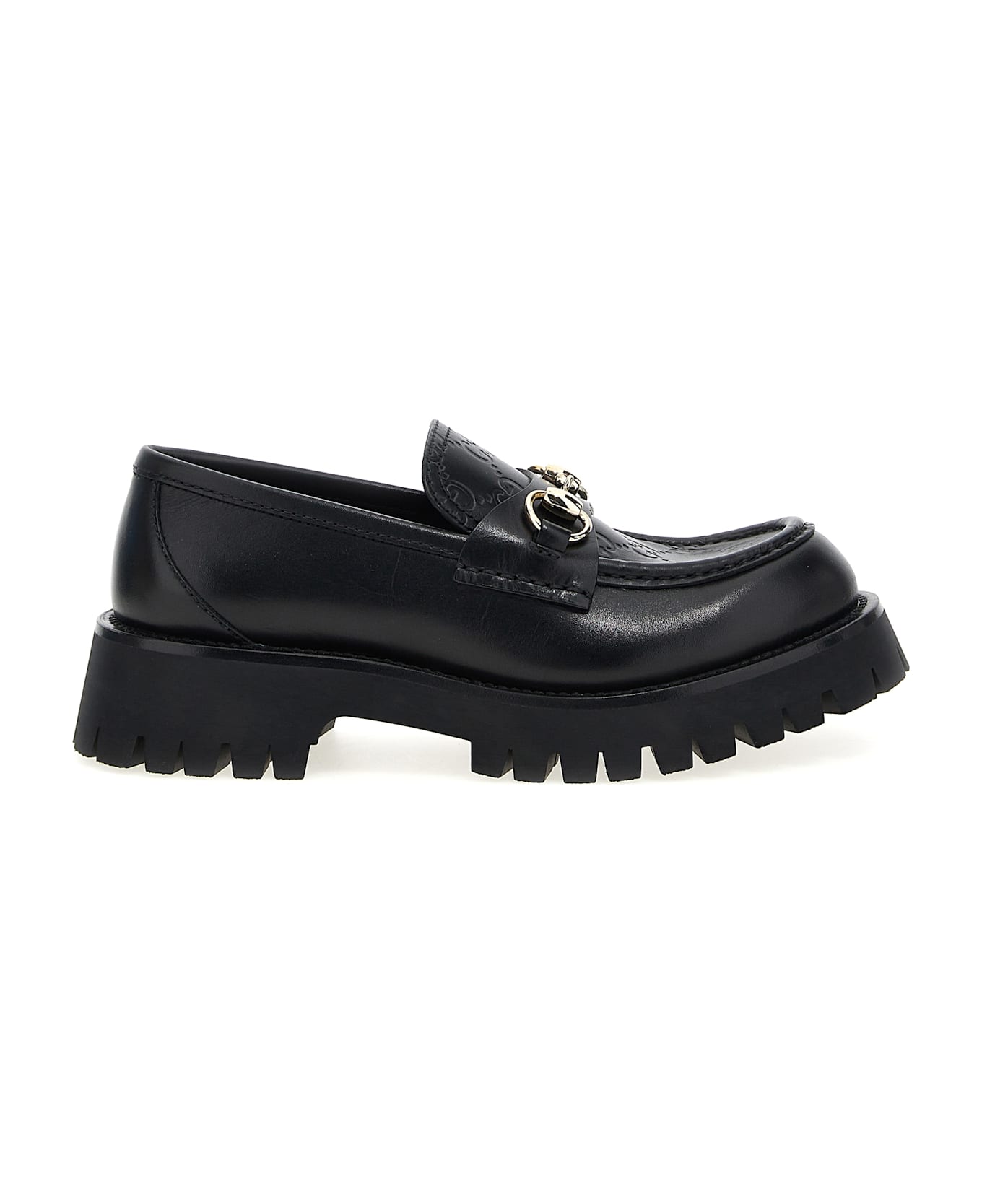 Leather loafers with GG leather top insert, front metal 'Morsetto' and rubber sole. Composition: 100% calfskin leather (Bos Taurus)