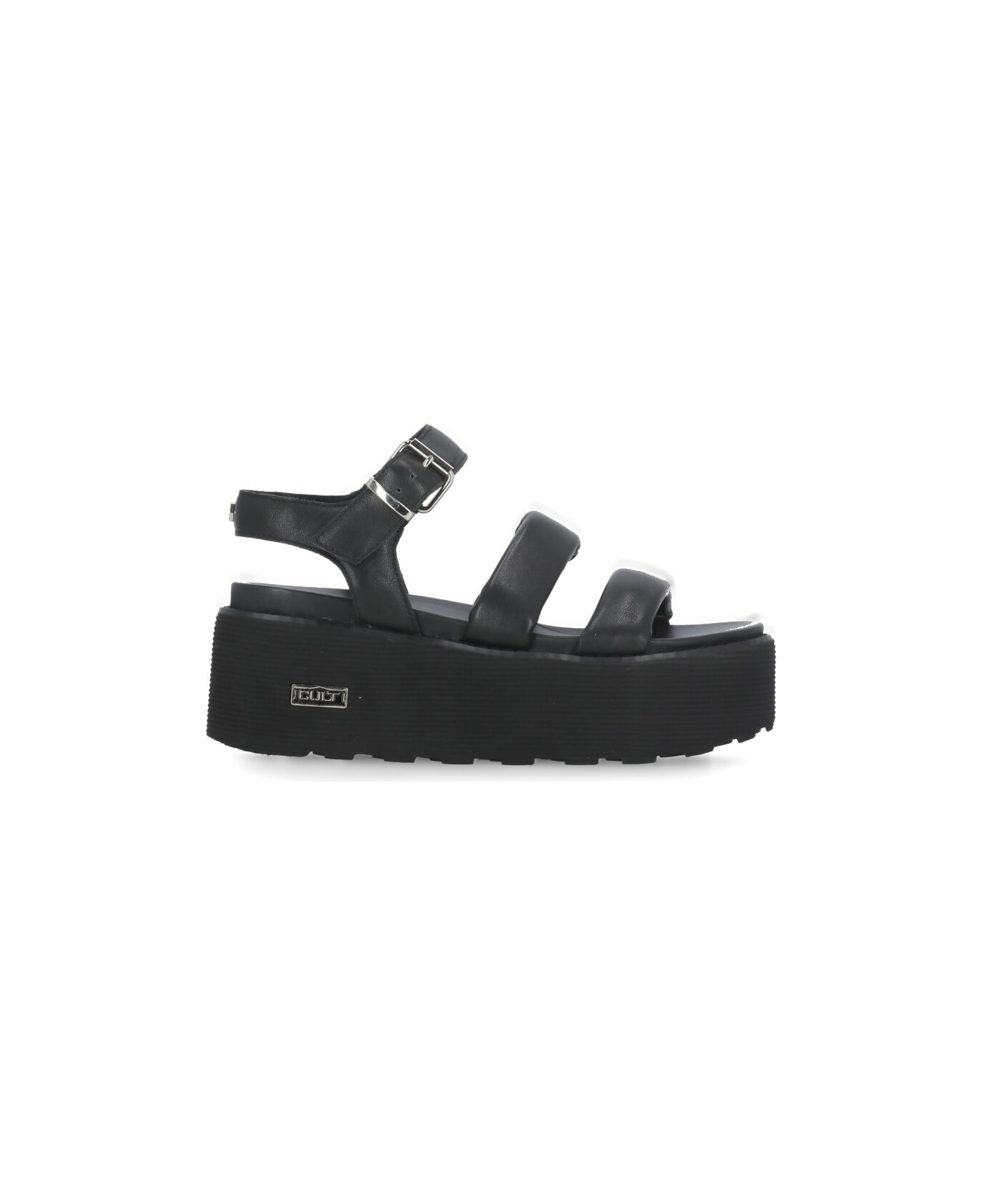 - Black Cult smooth leather sandals for woman - Round toe - Front strap fastening - Rear metallogoed stud - Side metal logoed tab - Raised rubber sole (8 cm)