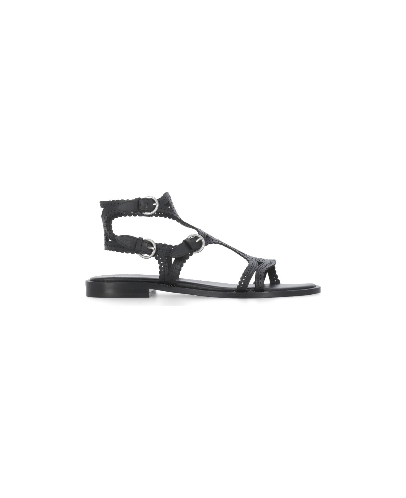 - Black ASH leather sandals for woman - Round toe - Perforated details - Ankle strap