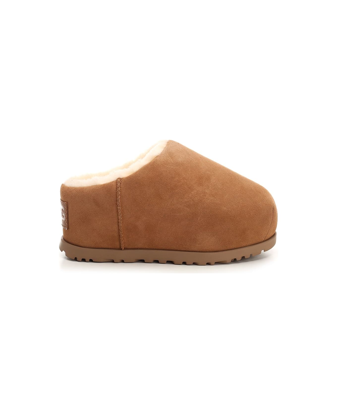 UGG Pumped slippers with padded upper covered in genuine suede and soft inner sole. Woven logo label on the insole and leather label with embossed UGG® logo on the heel.