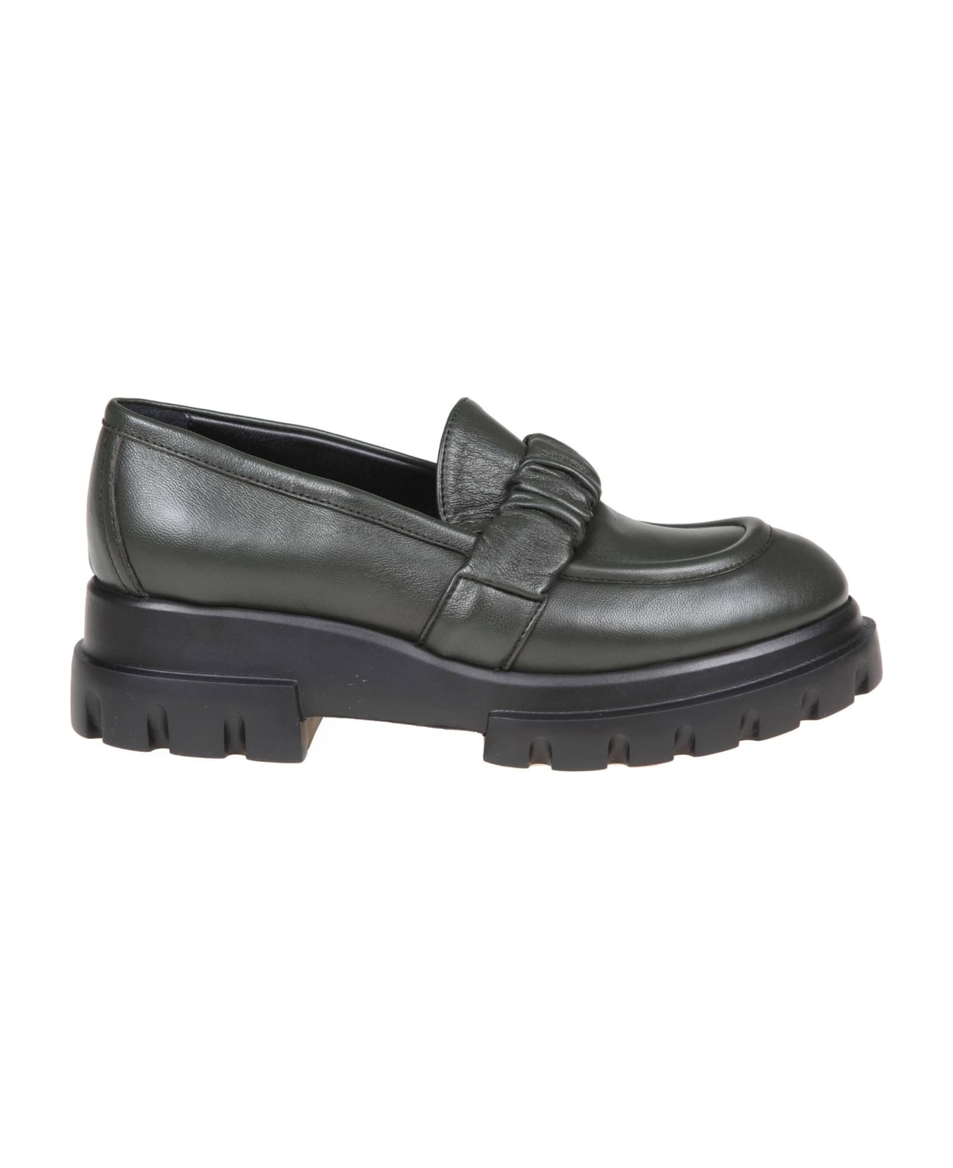 Leather moccasin green color stretch leather band on the upper leather interior 6 cm high platform rubber sole made in italy