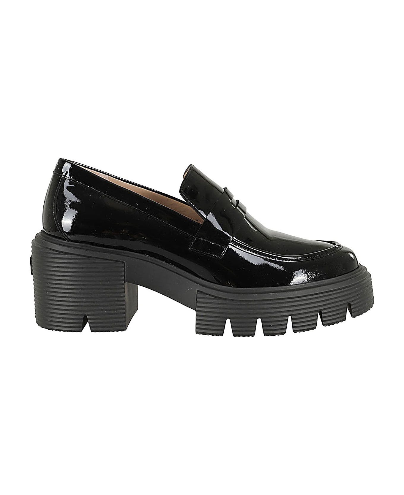 Soho moccasin - Stuart Weitzman - Black color - Brushed leather upper - Almond toe - Scuffed sole - Block heel - Heel height: 60 mm