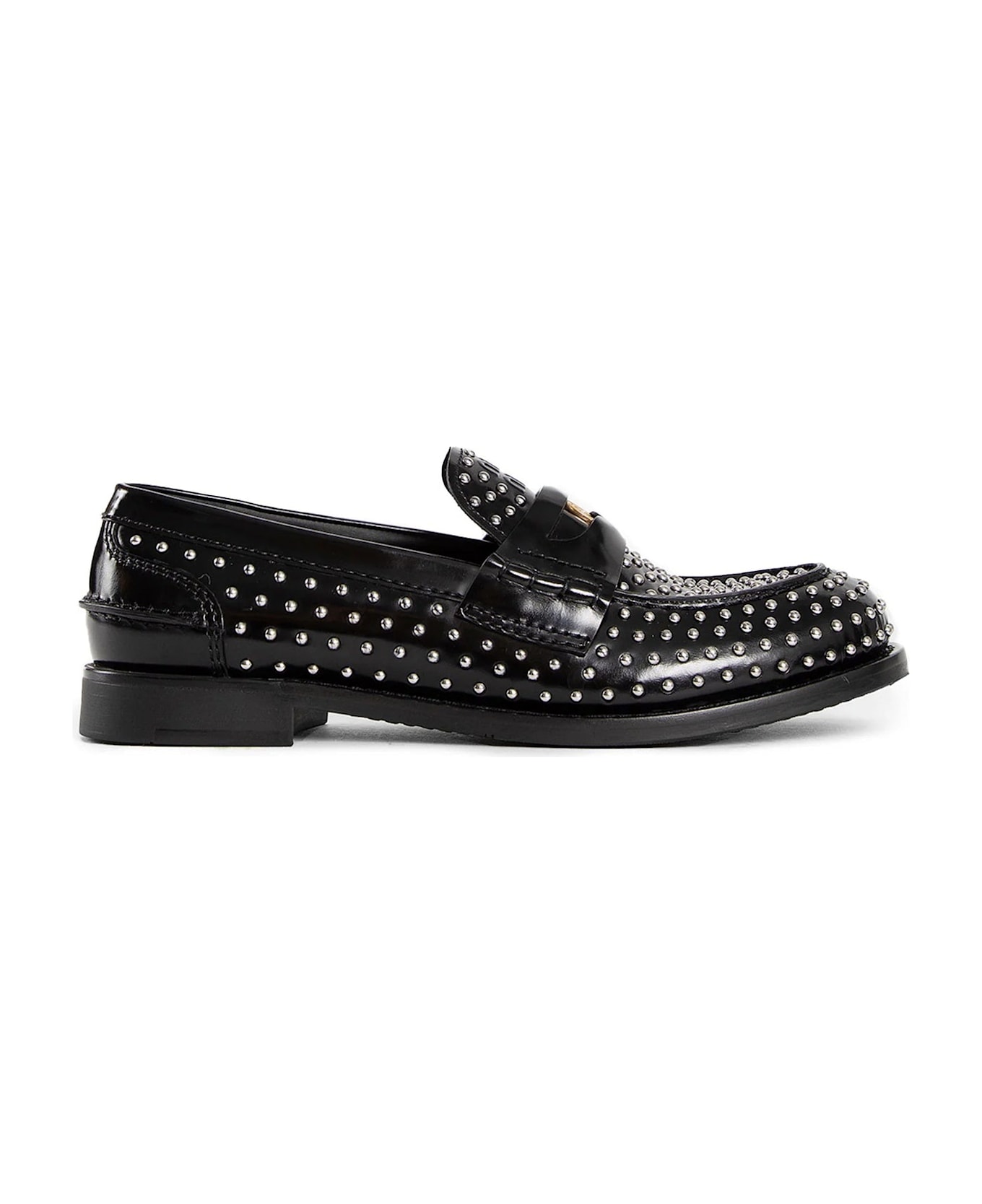 Composition: 100% calf leather Inner: Leather Insole: Leather Sole: Rubber Round toe Branded insole Slipon design Heel 2 cm Allover studs details Top penny detail Made in Italy