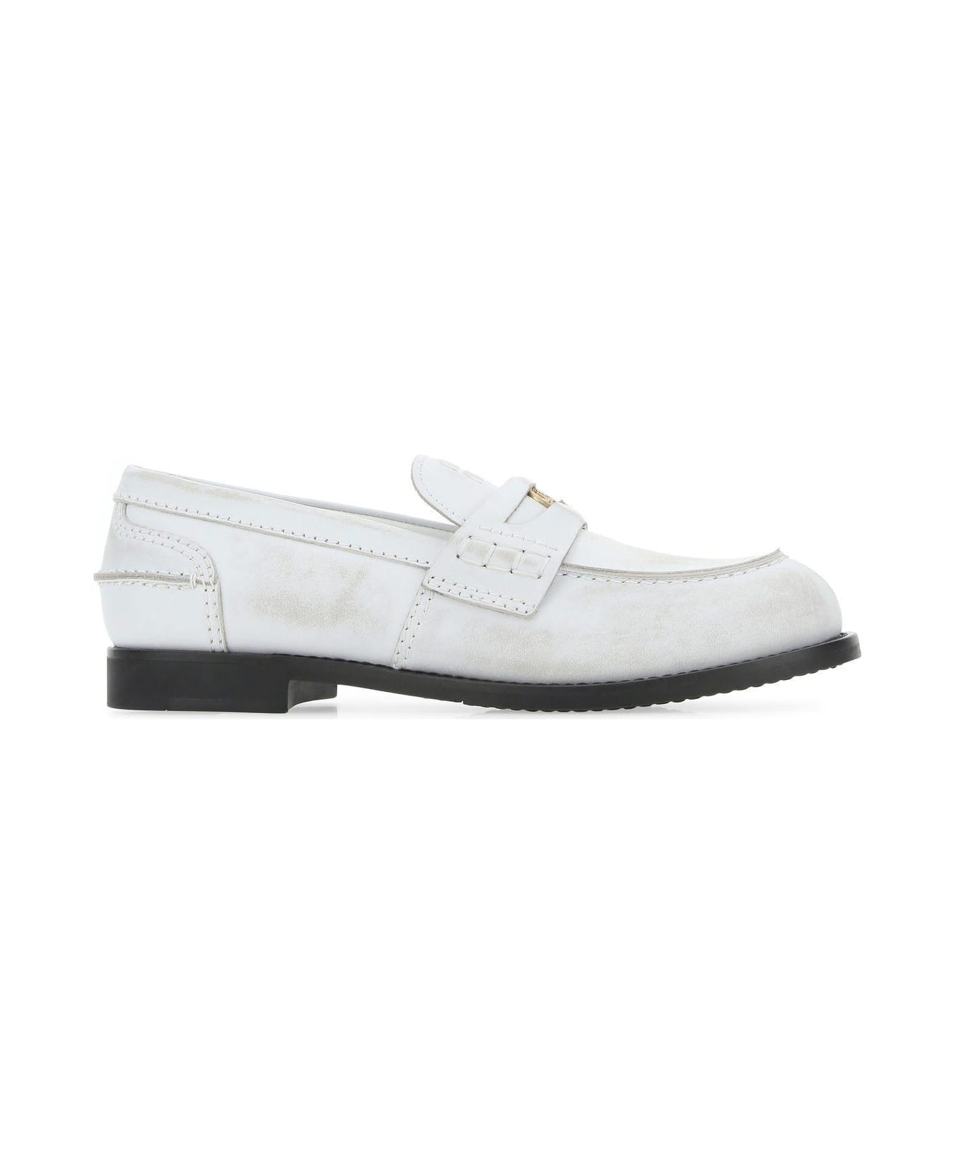 Loafers realized in vintage effect calf leather characterized by printed logo in relief enriched by metal detail on the vamp. - Round toe - Printed logo on the inside Composition: Exterior: 100% Leather Interior: 100% Leather Sole: Rubber