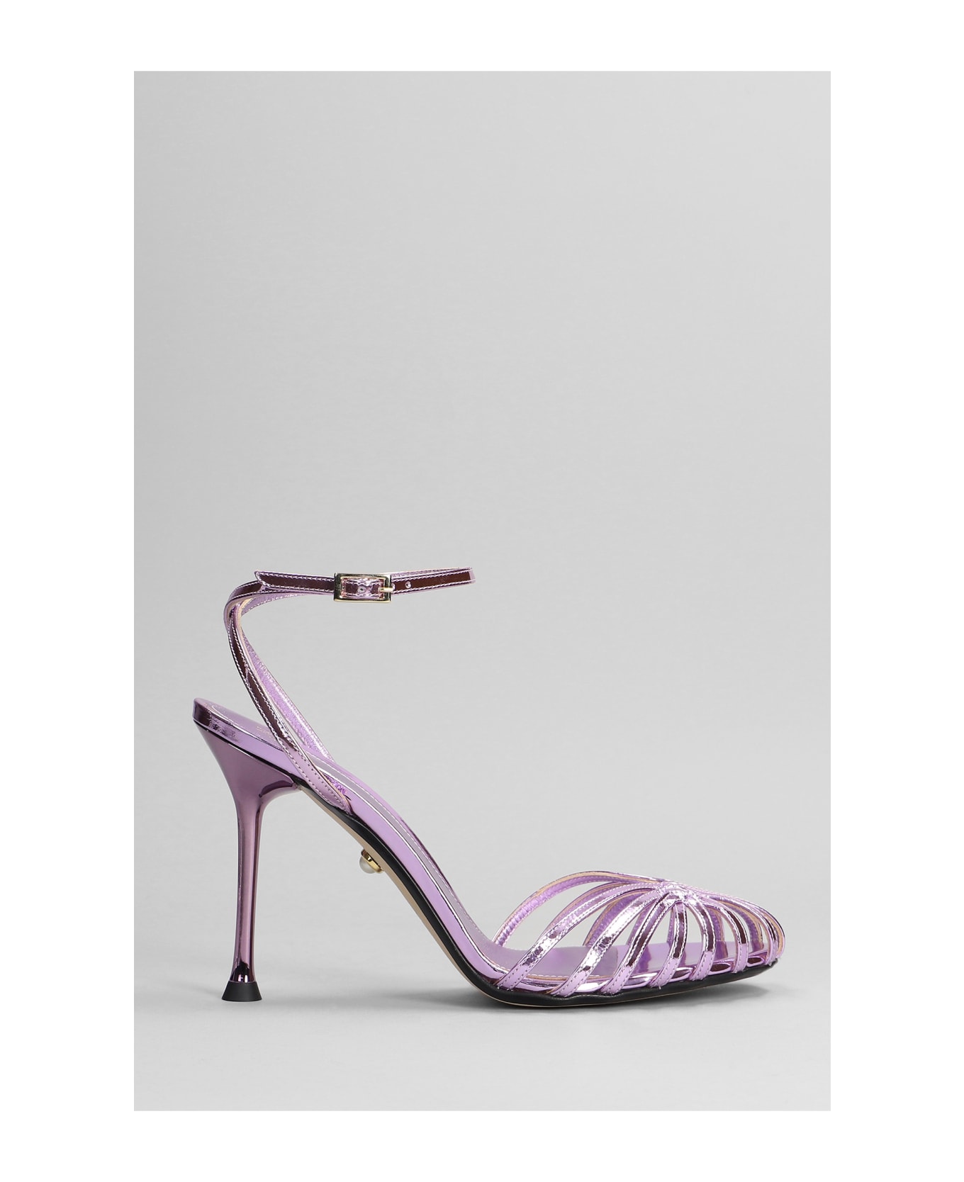 Ally 095 Sandals in Viola leather, ankle strap, multiple thin straps, 100% leather, leather sole, 110 mm heel, Made in Italy
