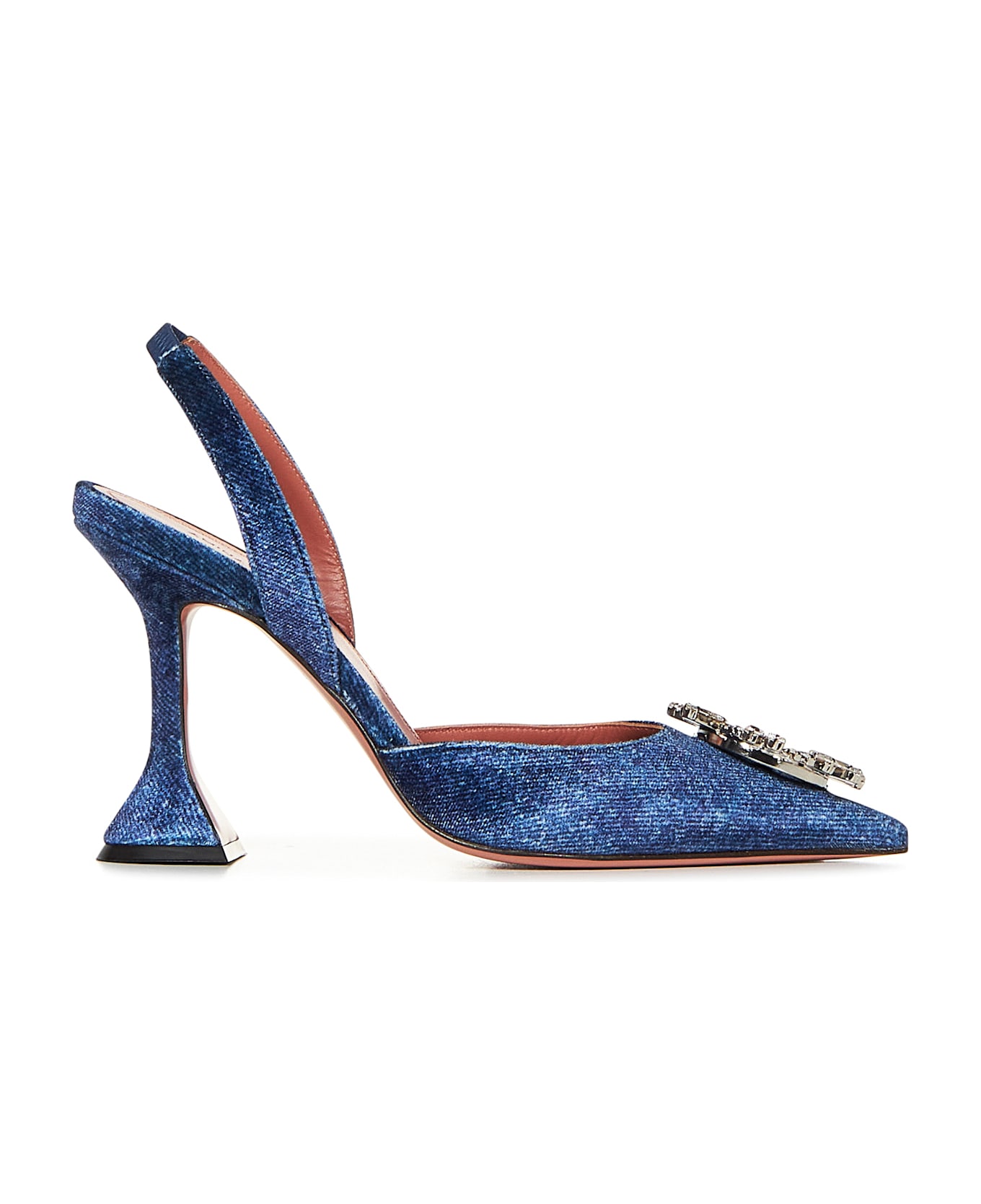 Composition: Slip-on; Ankle Strap With Elasticated Insert Pointy Toe With Crystal-embellished Brooch At Front Denim Covered Hourglass Heel Leather Interior And Insole Leather Sole With Rubber Insert Denim Color 100% Denim; Lining: 100% Goat; Sole: 70% Leather, 30% Rubber Made In Italy