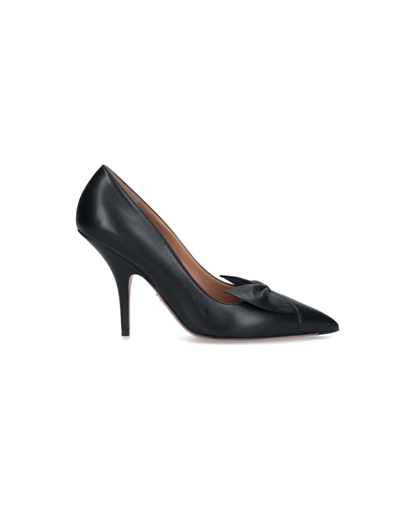 Ferragamo bow pumps in black lamb leather with pointed toe, tone-on-tone bow detail on the top, stiletto heel, slip-on fit, and leather sole. Composition: 100% Lambskin