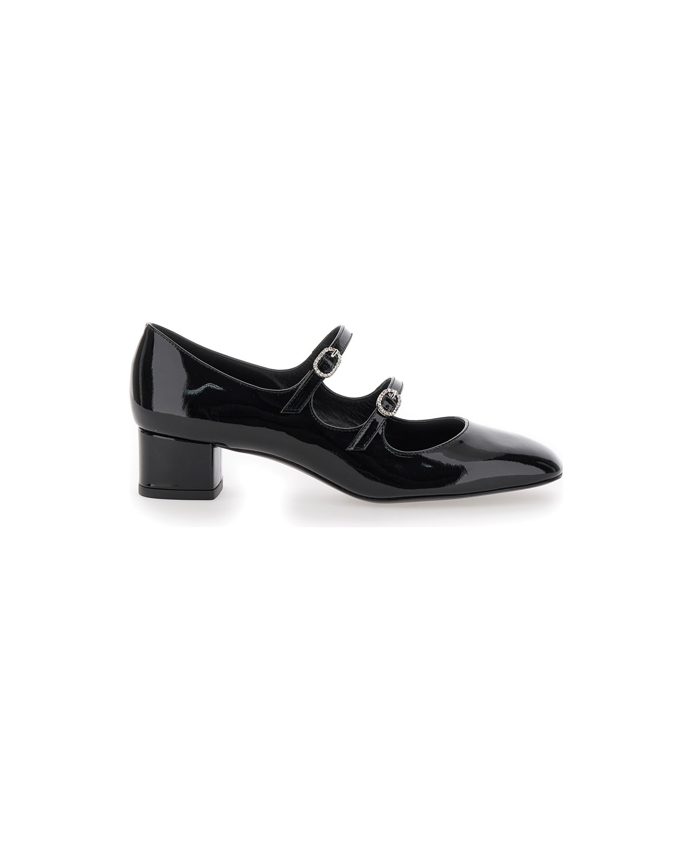 Mary jane Black Almond toe Adjustable straps Rhinestone buckles Block heel Patent leather Heel: 3,5 cm