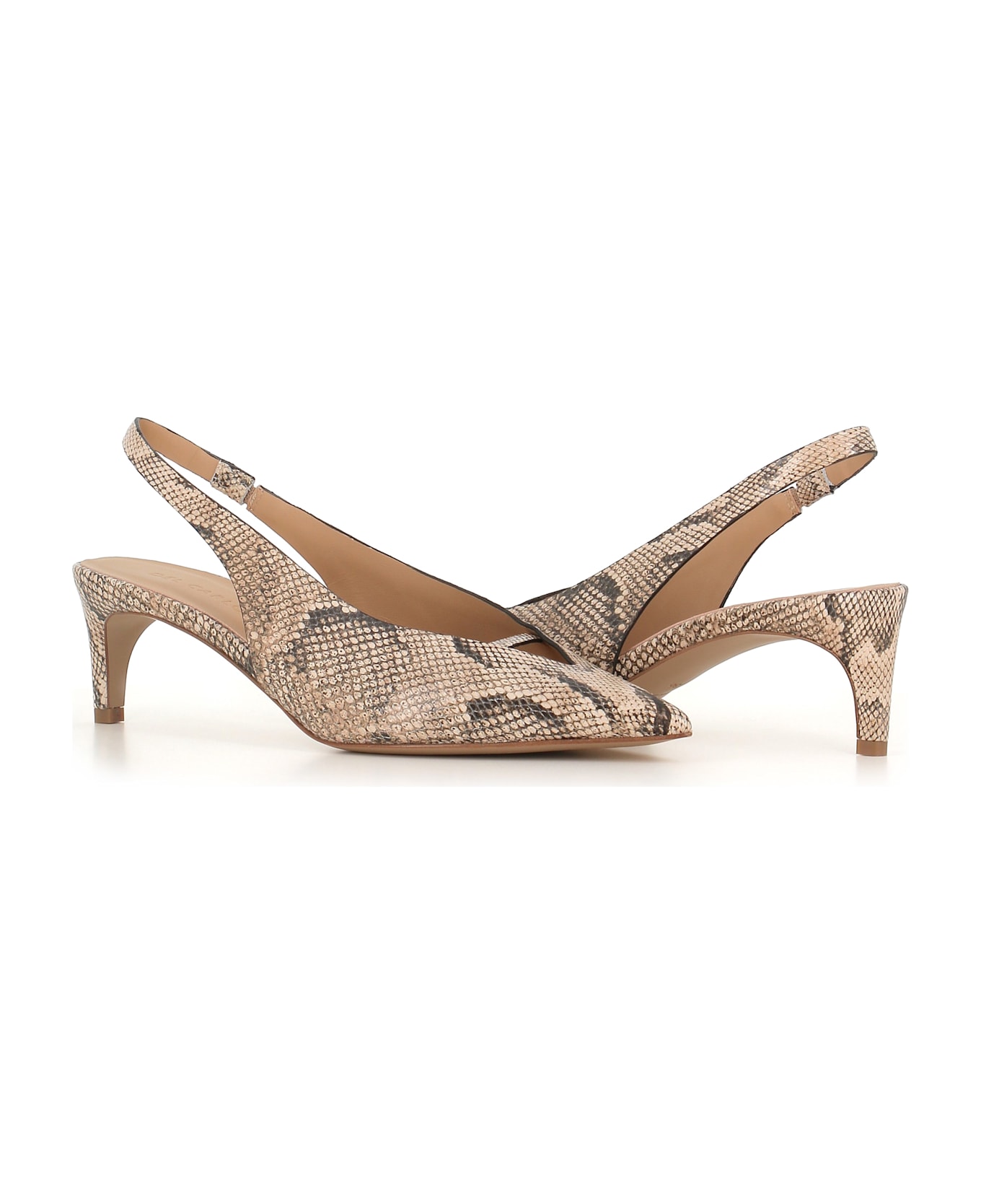 Phyton effect leather women's pointed-toe pump by Del Carlo. Leather sole. Lined interior. Heel: 5,5 cm
