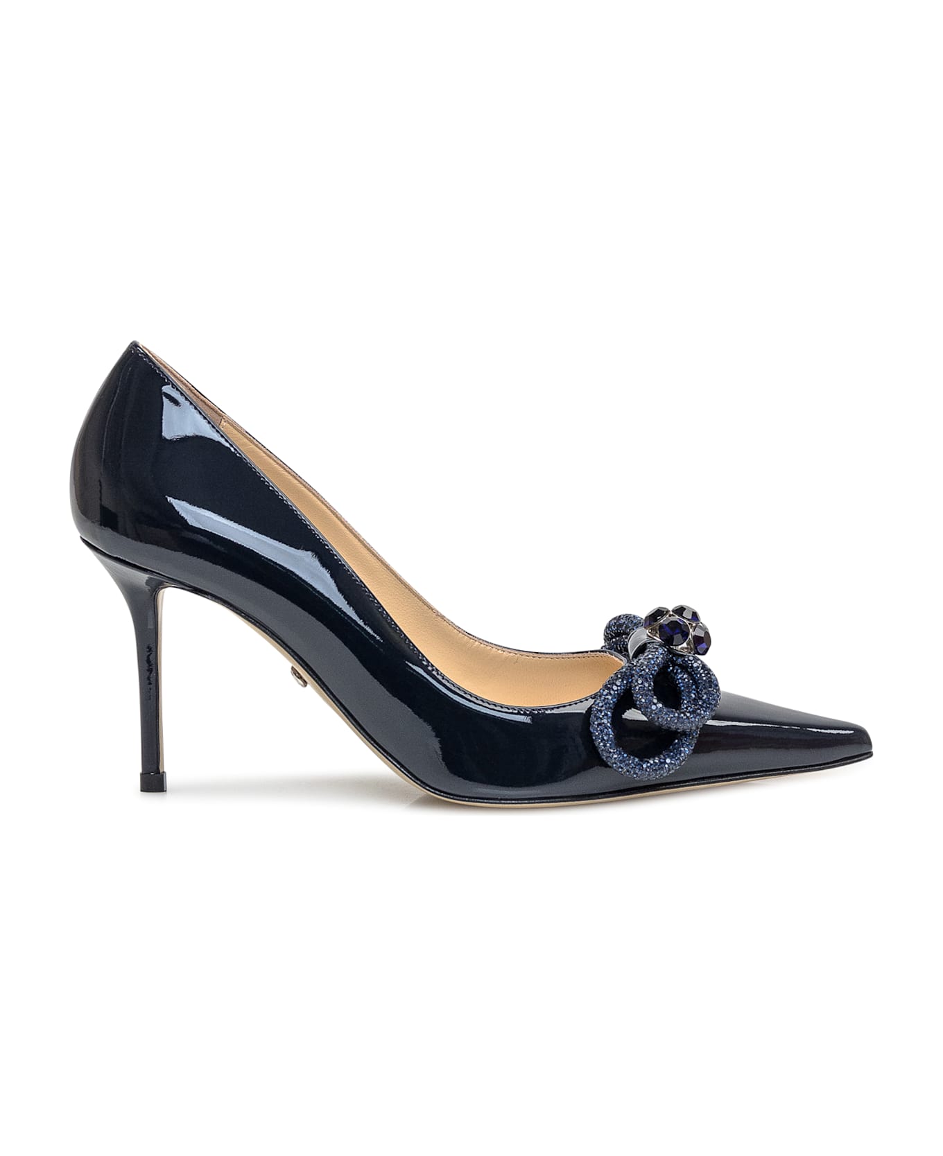 Purple patent leather pumps. Rhinestone and diamond bow applied on the toe.