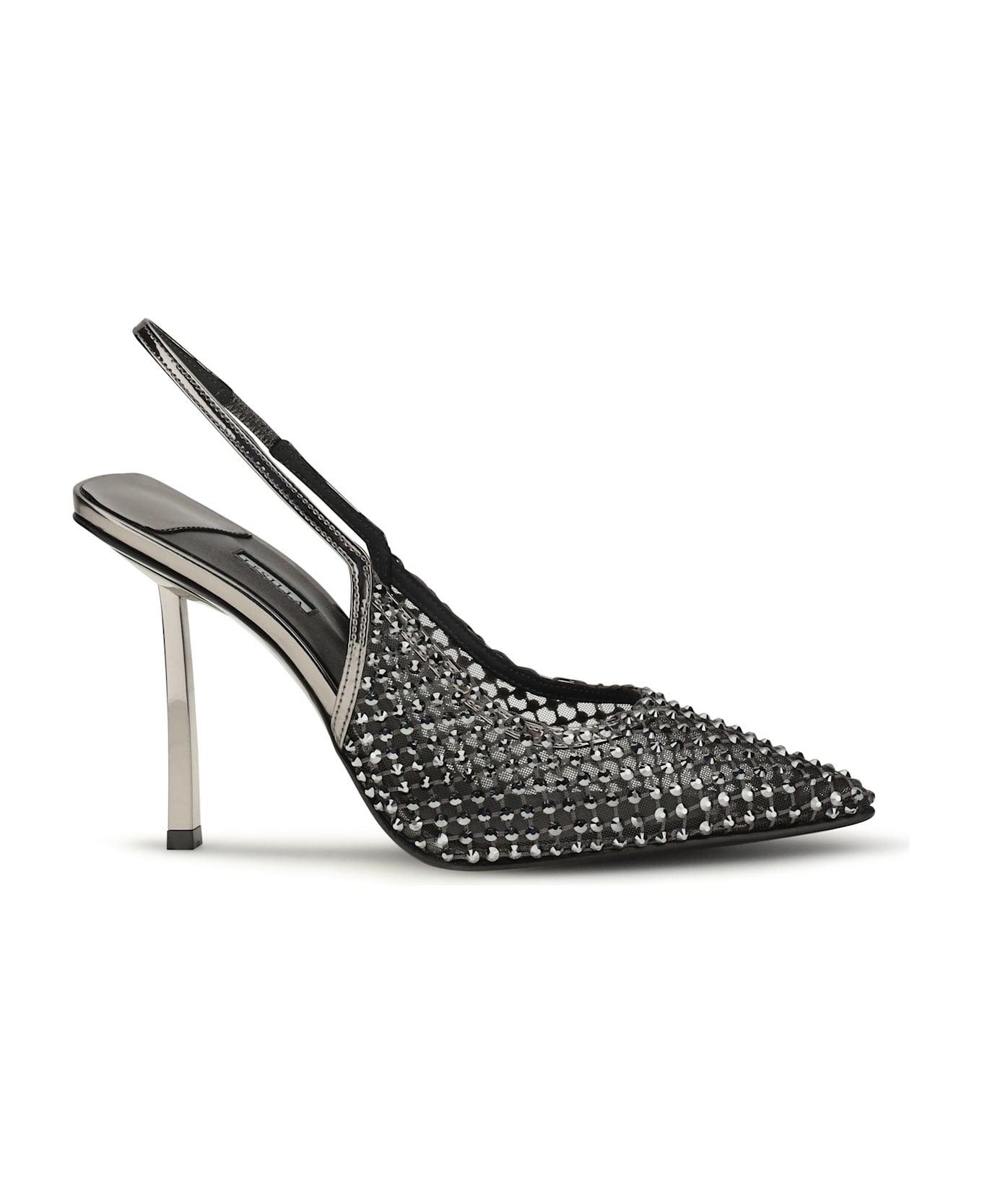 The gilda pumps by le silla seduce with an upper that alternates shiny satin and stretch mesh, creating a refined play of transparencies that envelops the foot with natural sensuality. hand-applied crystals catch the light with every movement, giving brilliance and dynamism. the sharp toe and 100mm stiletto heel sculpt a bold and sophisticated silhouette designed to leave an unforgettable impression.