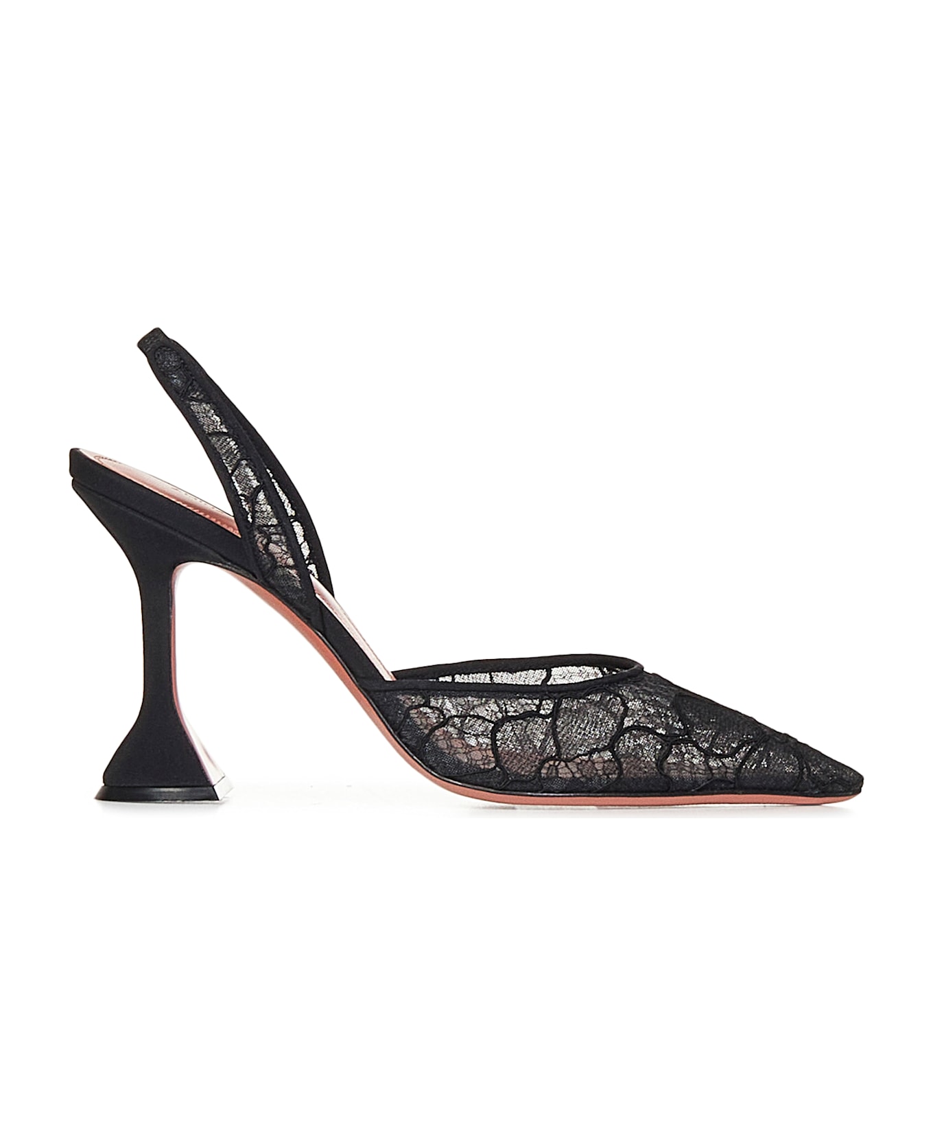 Composition: Floral Lace Ankle Strap With Elasticated Insert; Pointed Toe Black Satin Covered Hourglass Heel Leather Insole Leather Sole With Rubber Insert Black Color , 100% Fabric Made In Italy