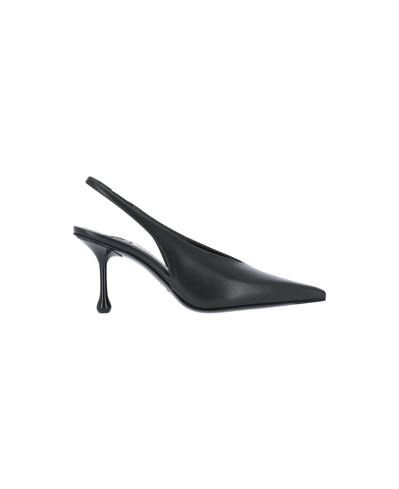 Jimmy Choo "isa 80" slingback pumps in dark green calf leather with pointed toe, back strap, teardrop heel, slip-on fit, leather and rubber sole. Composition: 95% Calfskin, 5% Lambskin