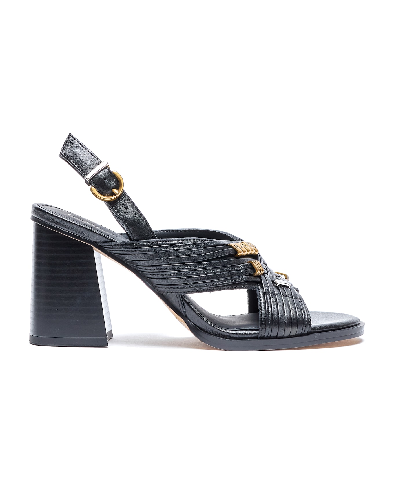 Pinko black Lara pump sandals, round toe, lateral buckle, leather model