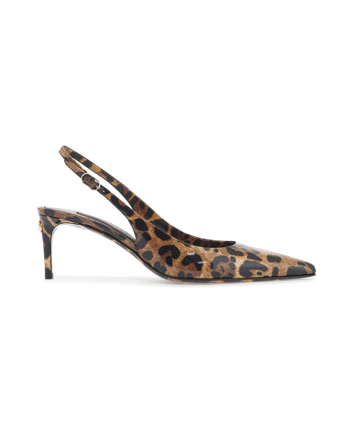 These Dolce & Gabbana slingback pumps are made of glossy leopard print leather with an adjustable strap. They feature a pointed design with a leather insole, a covered stiletto heel and a golden DG metal logo. The matching leather sole adds to the overall luxurious look. Composition: 100% calfskin
